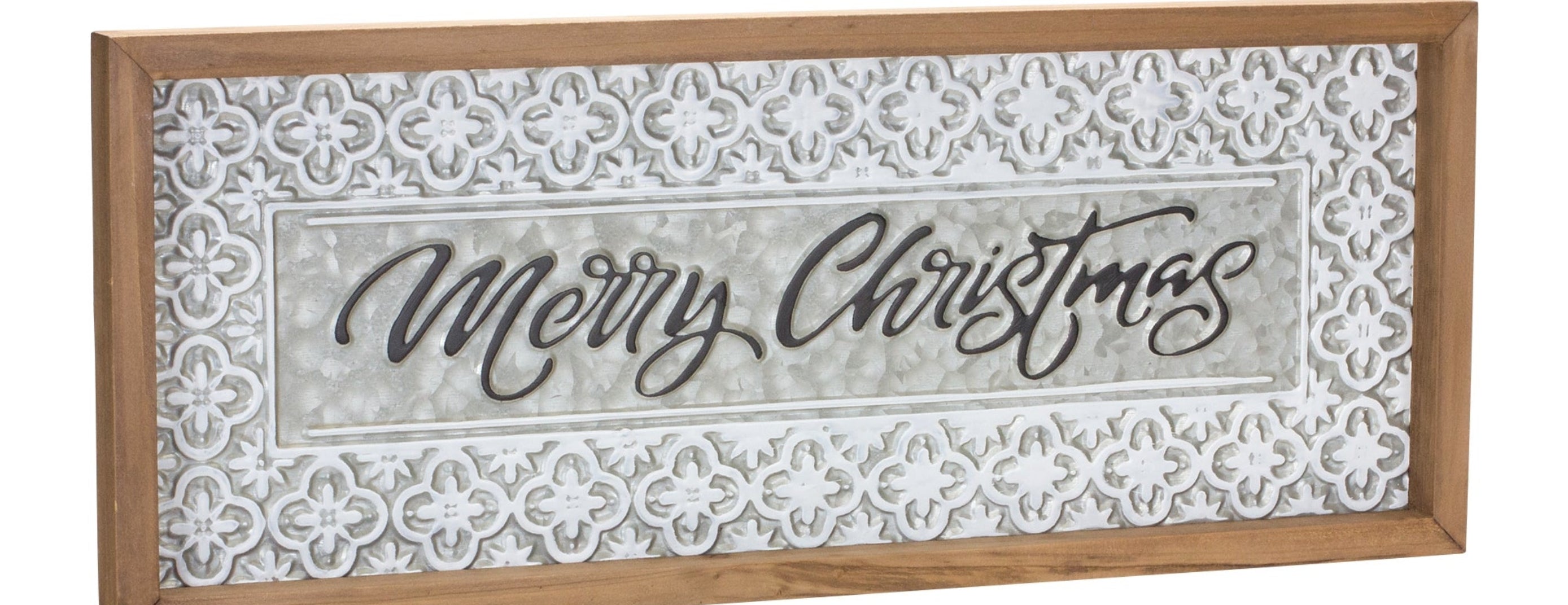 Bring sophistication and holiday cheer to your home with this set of 2 Merry Christmas Signs. Crafted from a combination of durable metal and wood, each sign features intricate, galvanized detailing and elegant cursive "Merry Christmas" lettering in white and silver tones. Perfect for walls, mantels, or entryways, this set adds a festive, sophisticated touch to any room. Sold as two matching pieces, these signs create a balanced and striking holiday display, ensuring a warm and joyful atmosphere throughout the season.