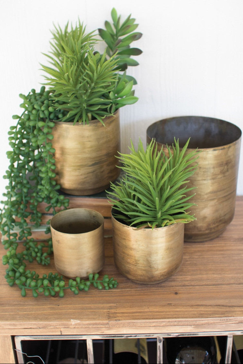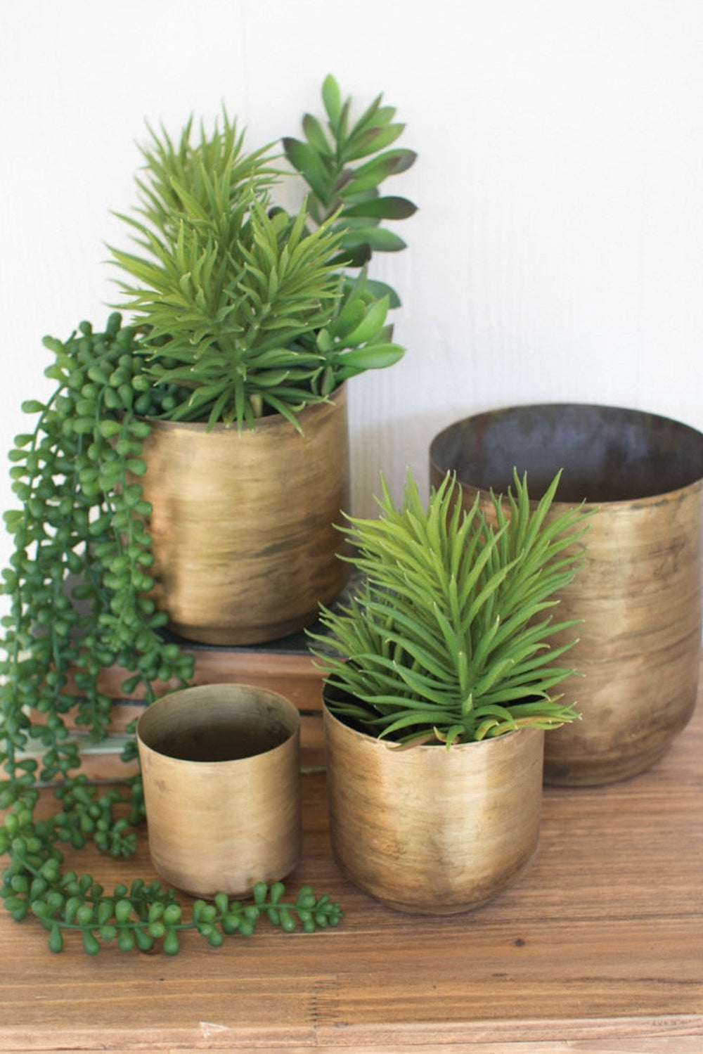 Kalalou Aged Brass Flower Pots – Set of 4 Metal Decorative Planters