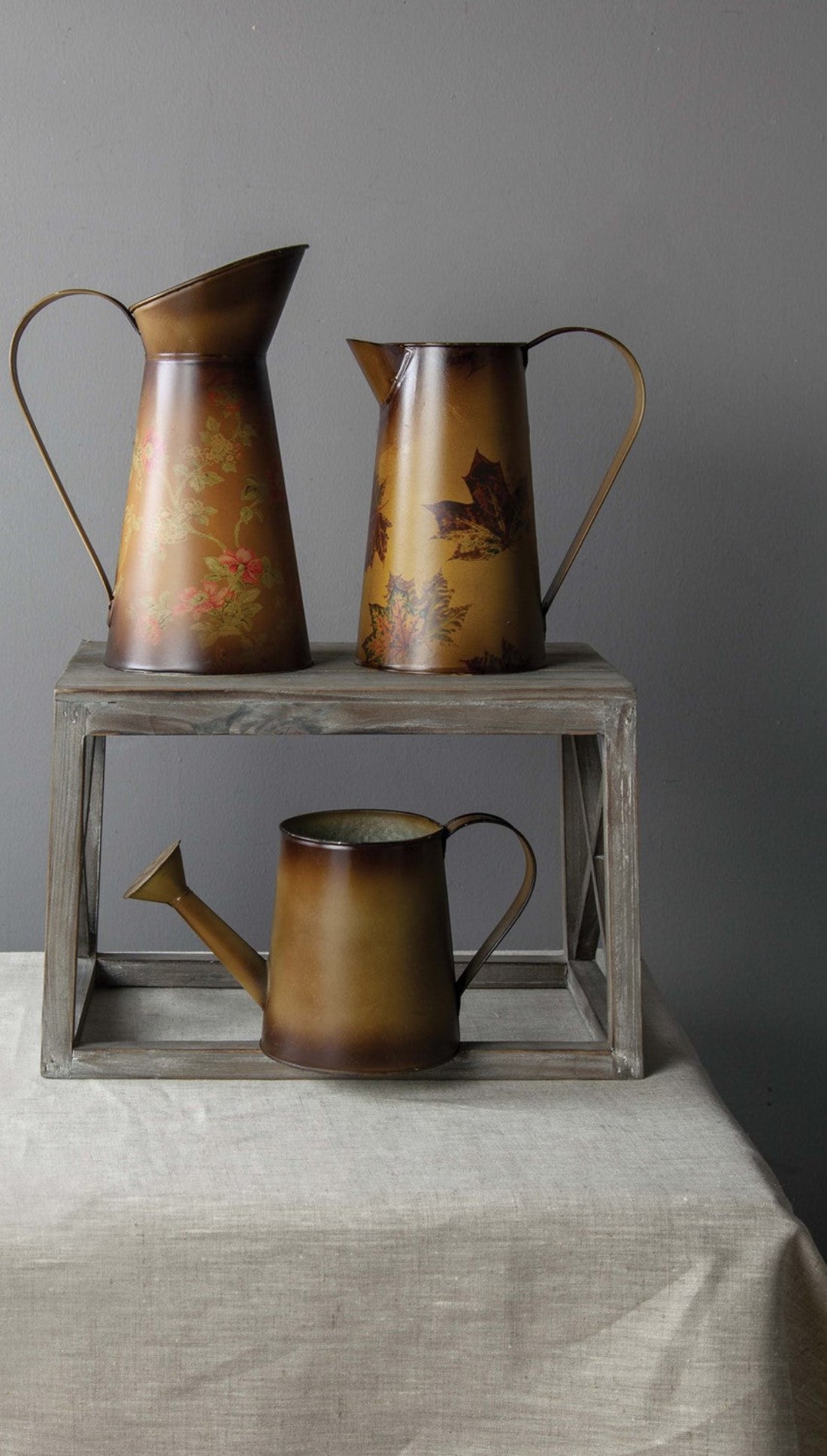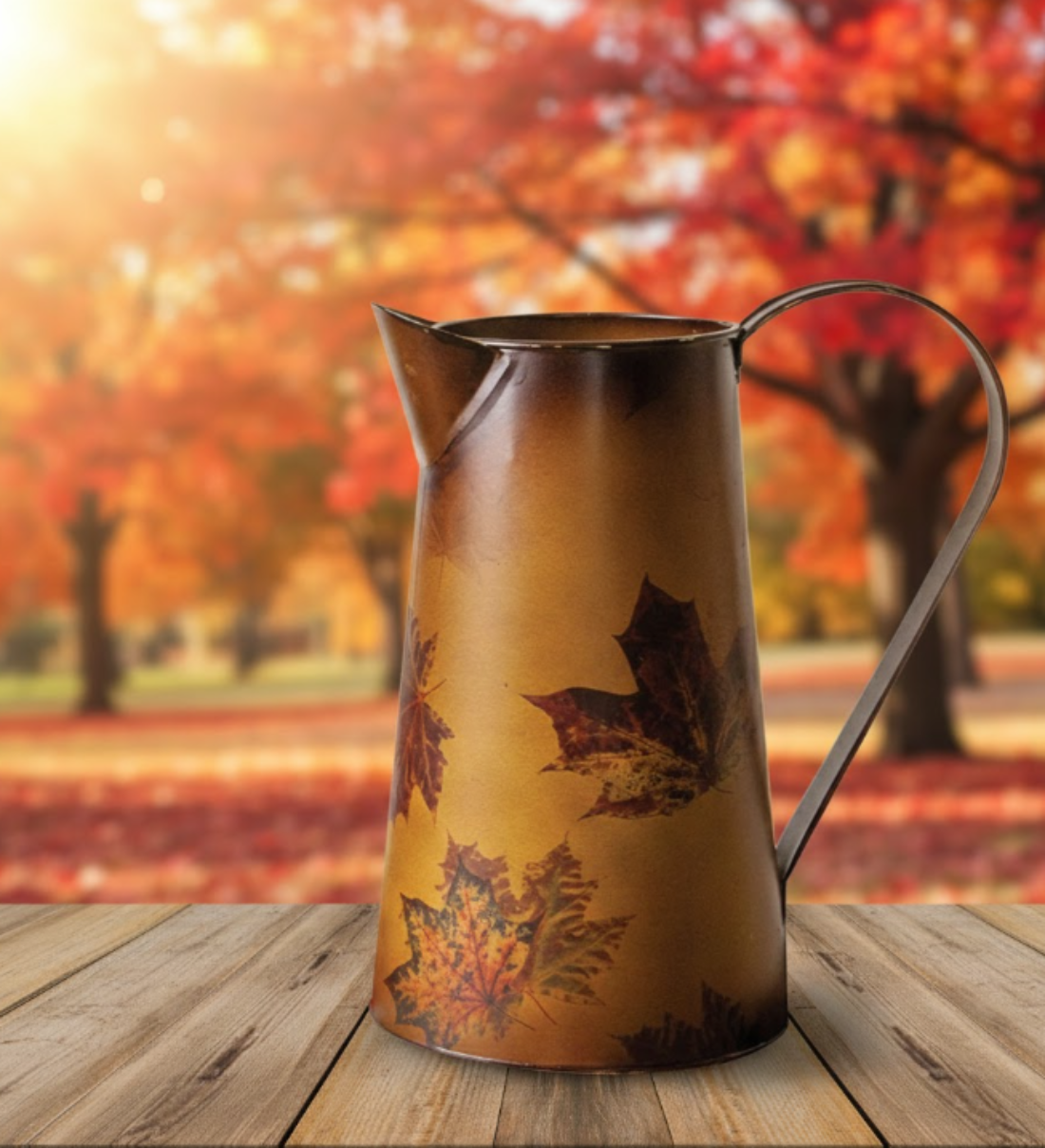 Metal Pitcher Fall Leaver – Brown ( 8.75") by Manual Woodworkers