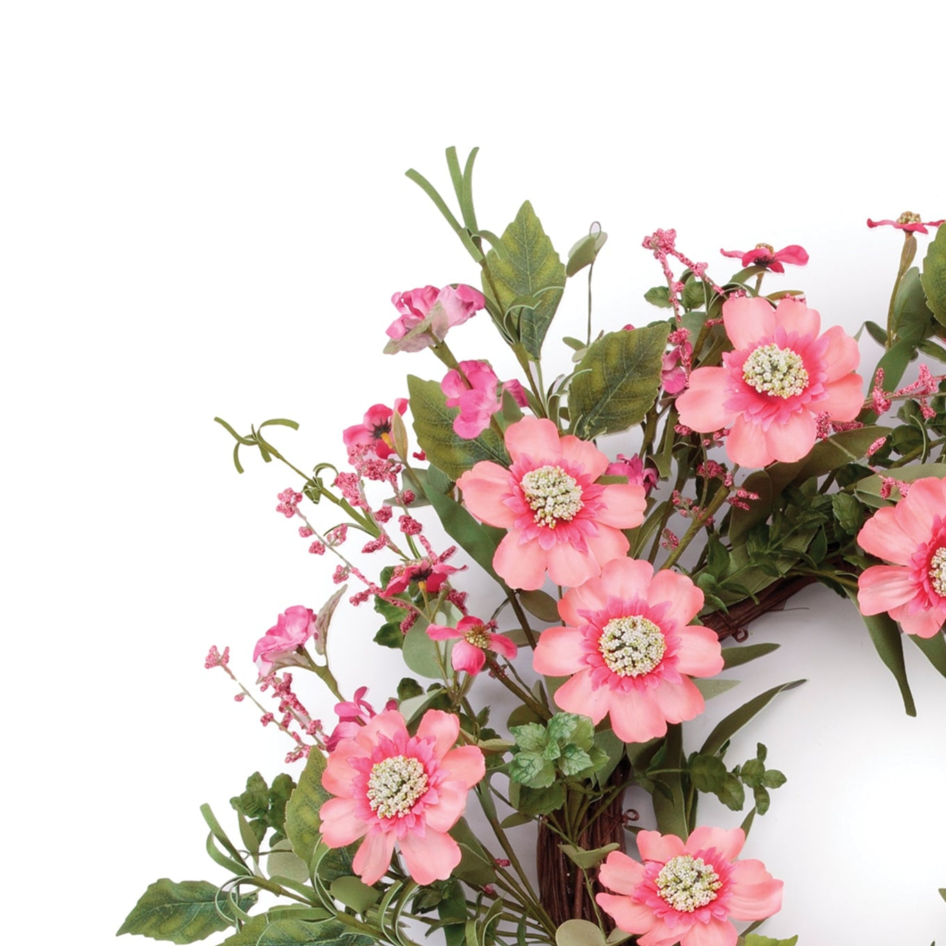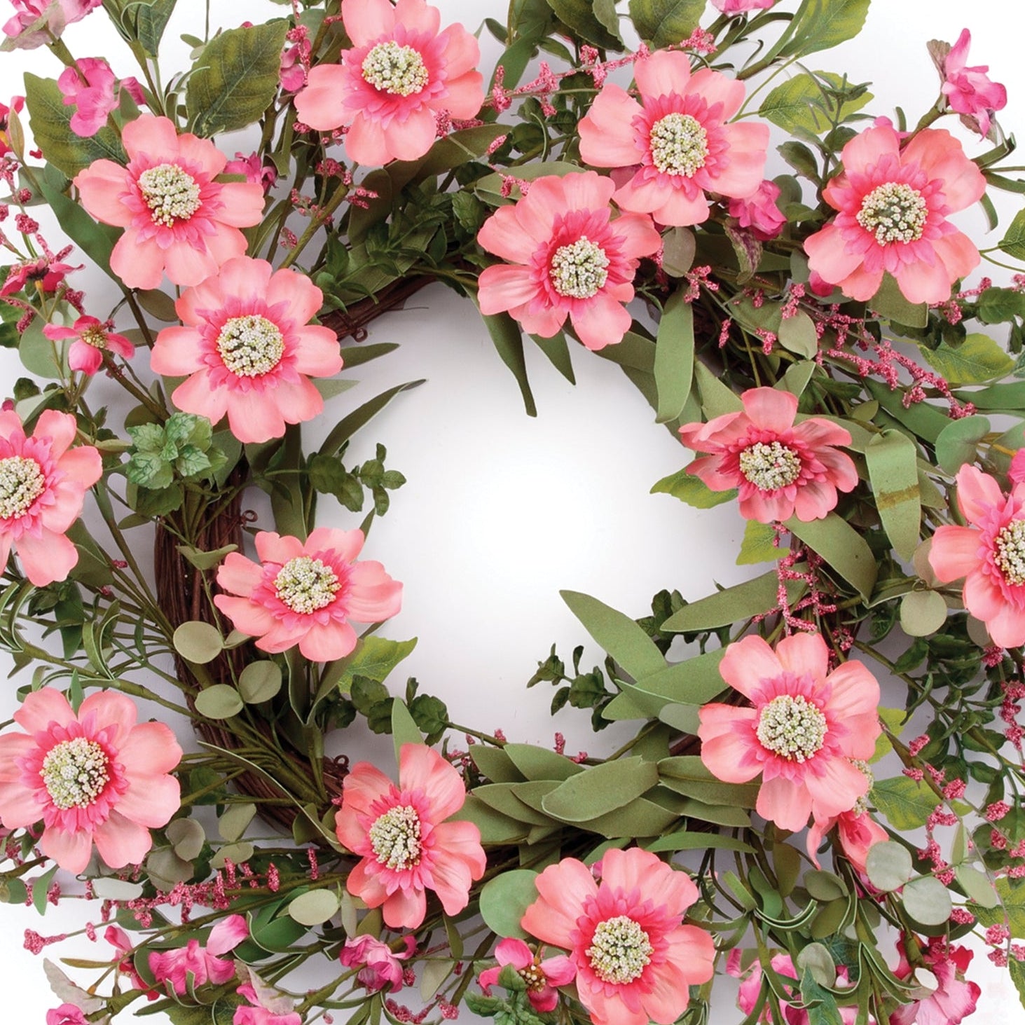 Mixed Scabiosa Floral Wreath, 6.5"H x 22"D Pink and Green Artificial Flower Wreath by Melrose