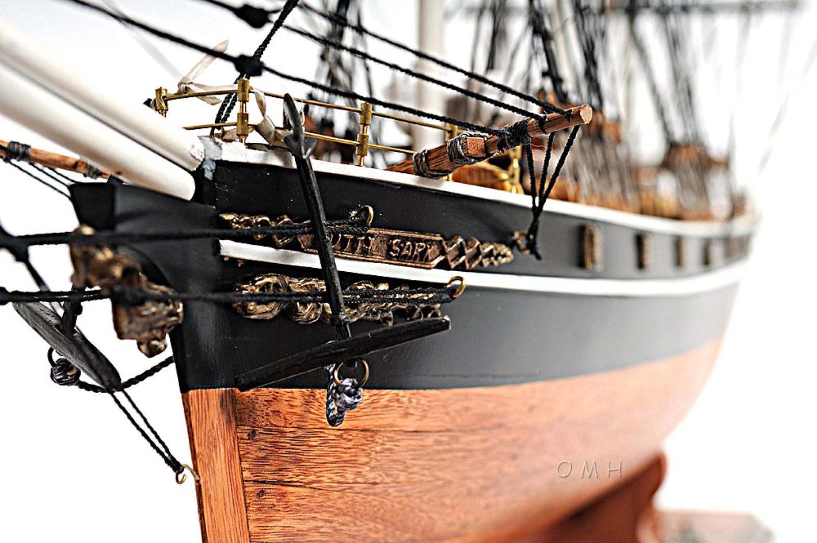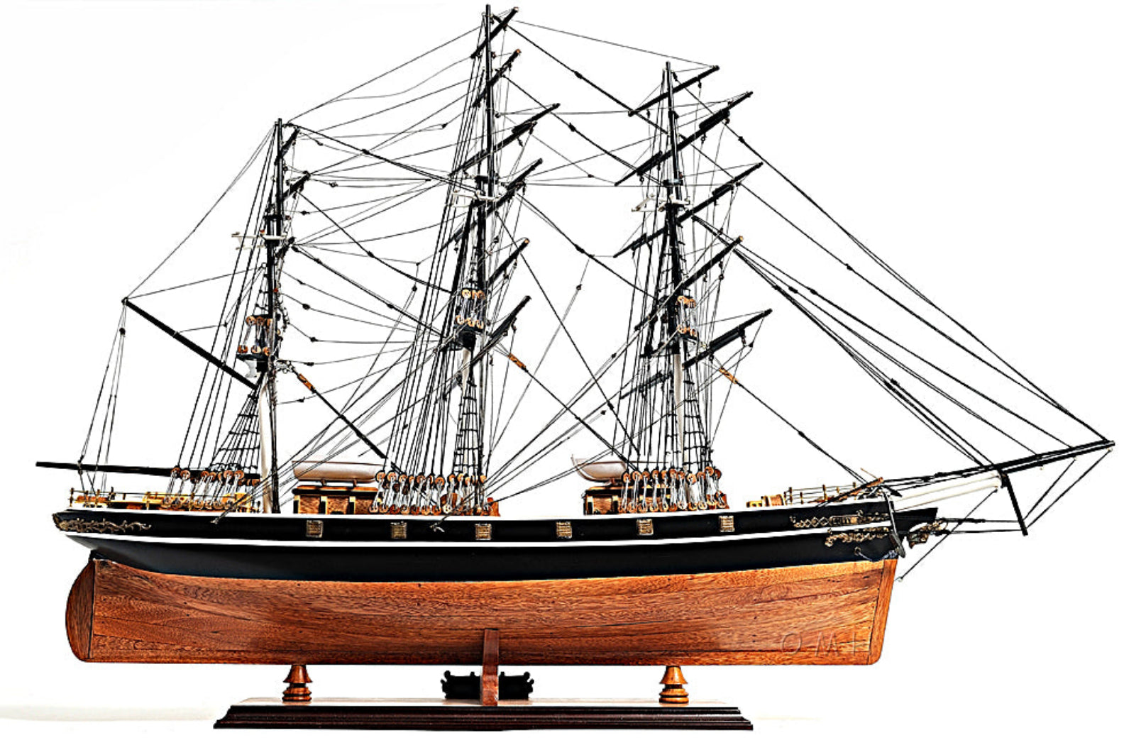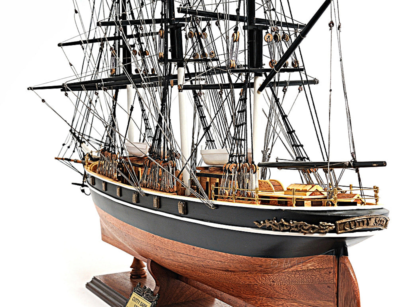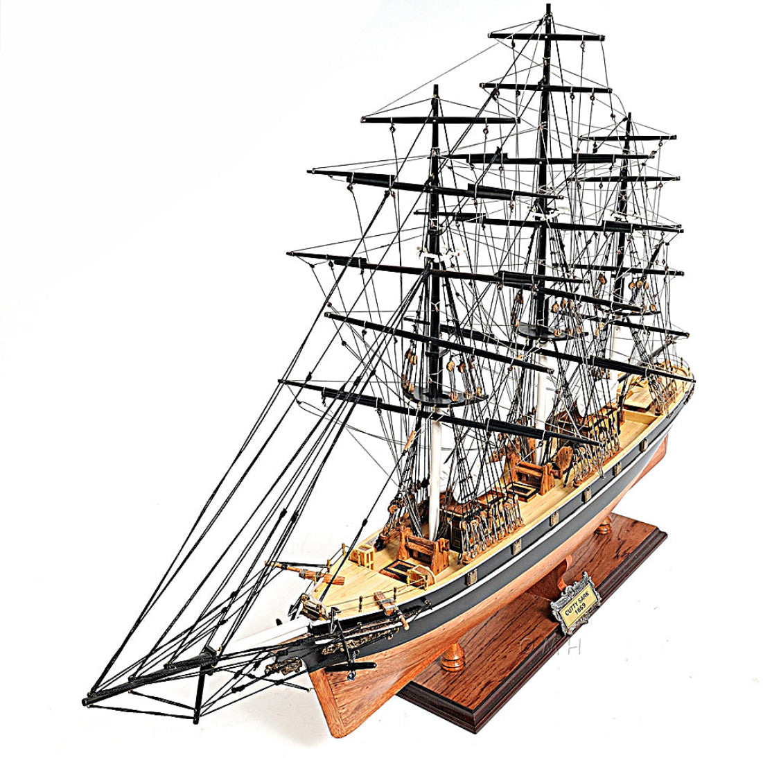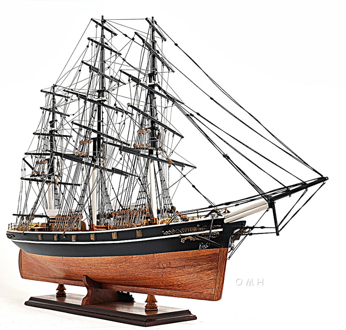 - Authentic Cutty Sark replica with no sails for unobstructed rigging view