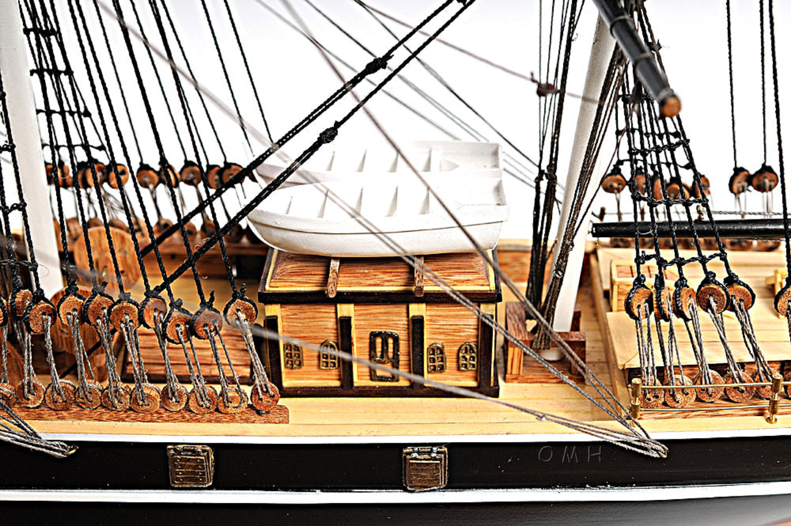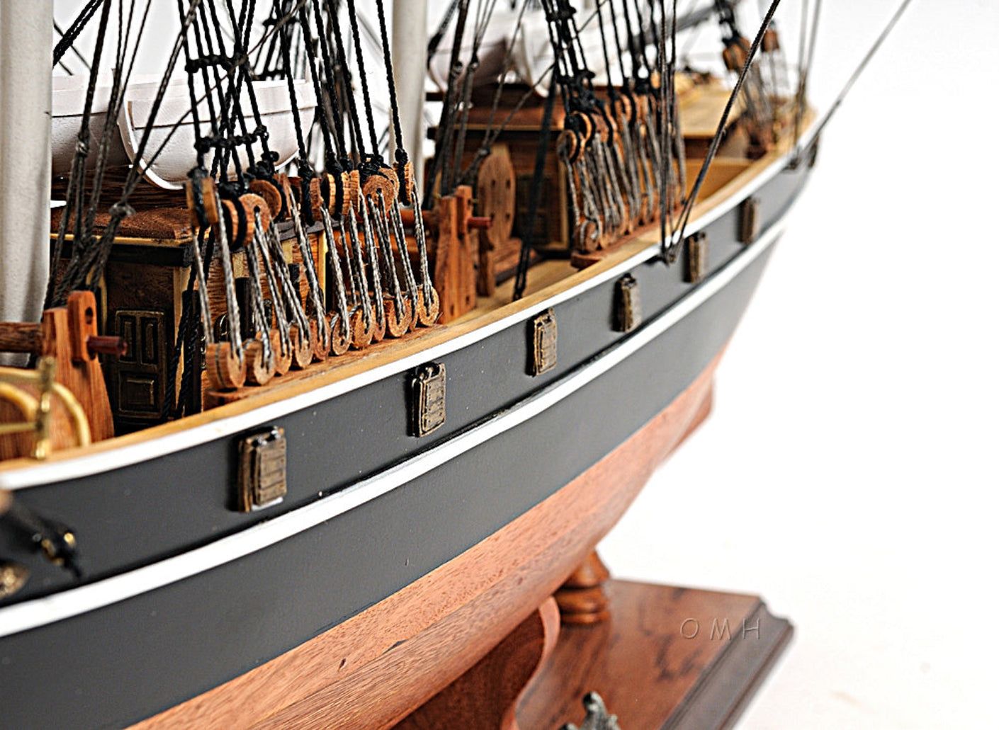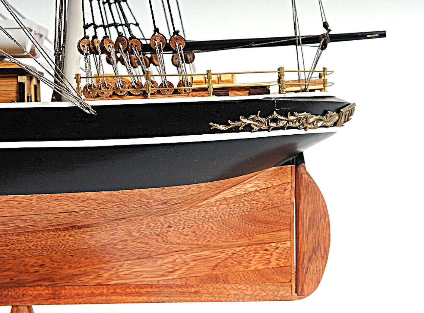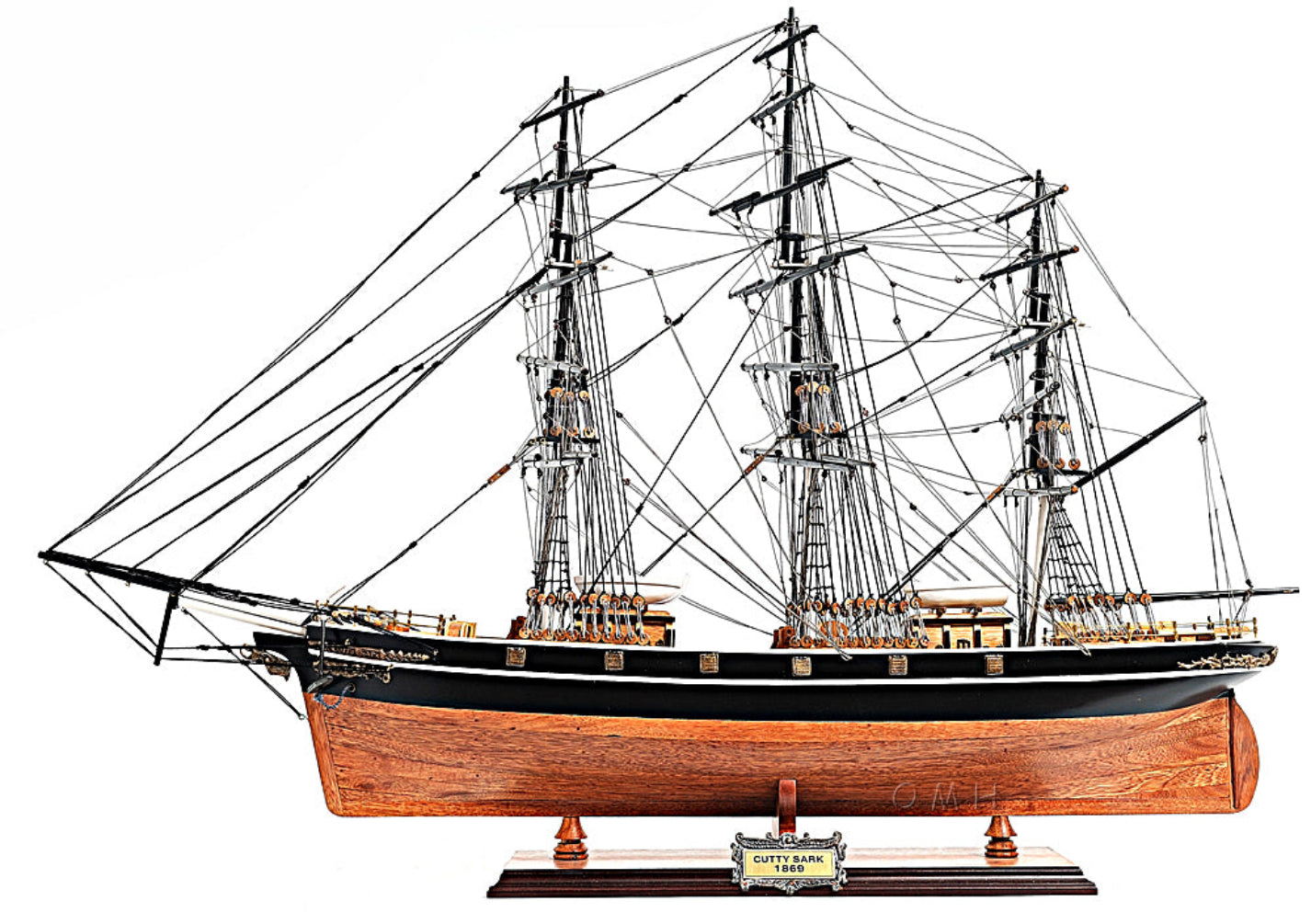 - Authentic Cutty Sark replica with no sails for unobstructed rigging view