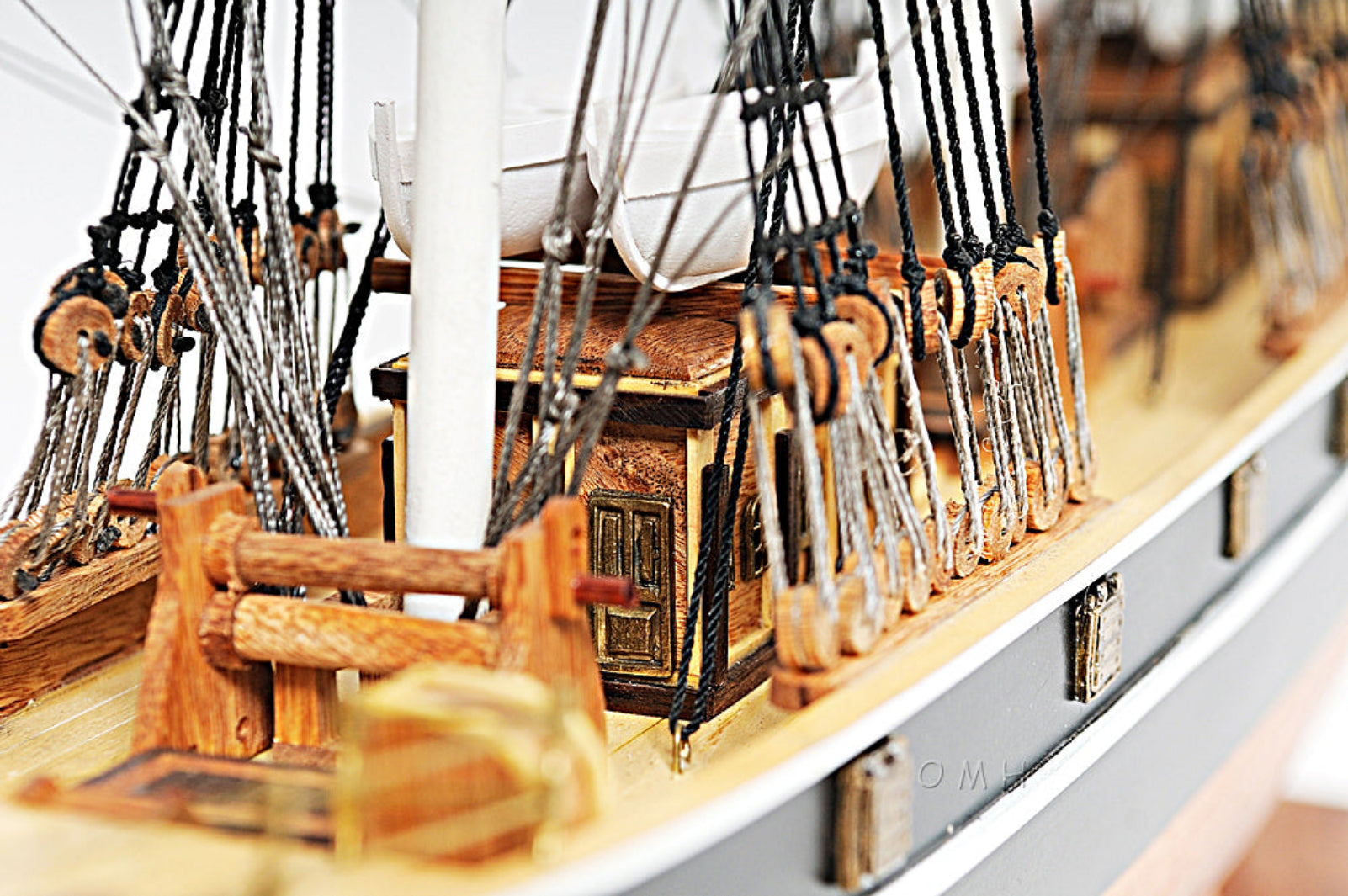 - Features painted masts, lifeboats, partially painted hull, and brass fittings