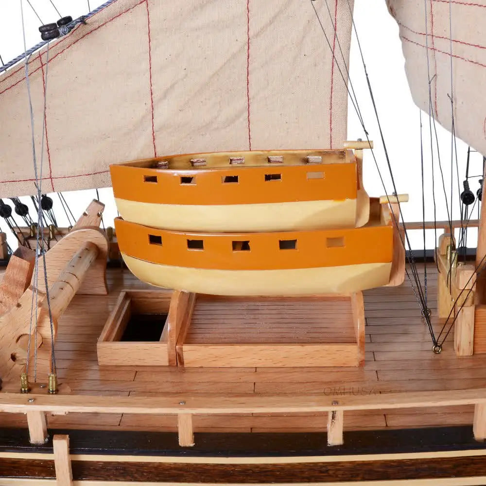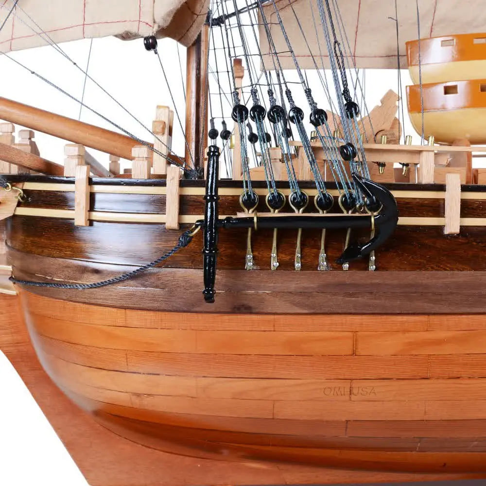 - Three detailed decks, hand-rigged masts, and hand-stitched linen sails