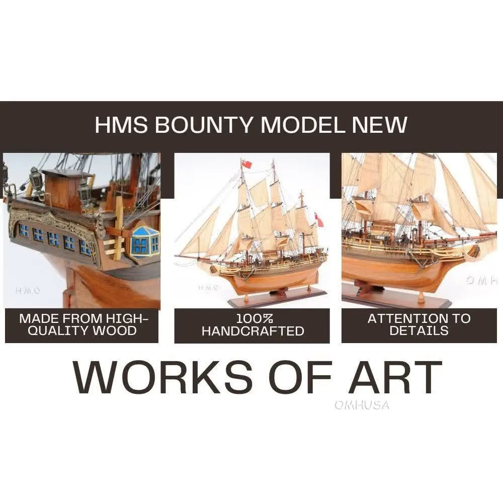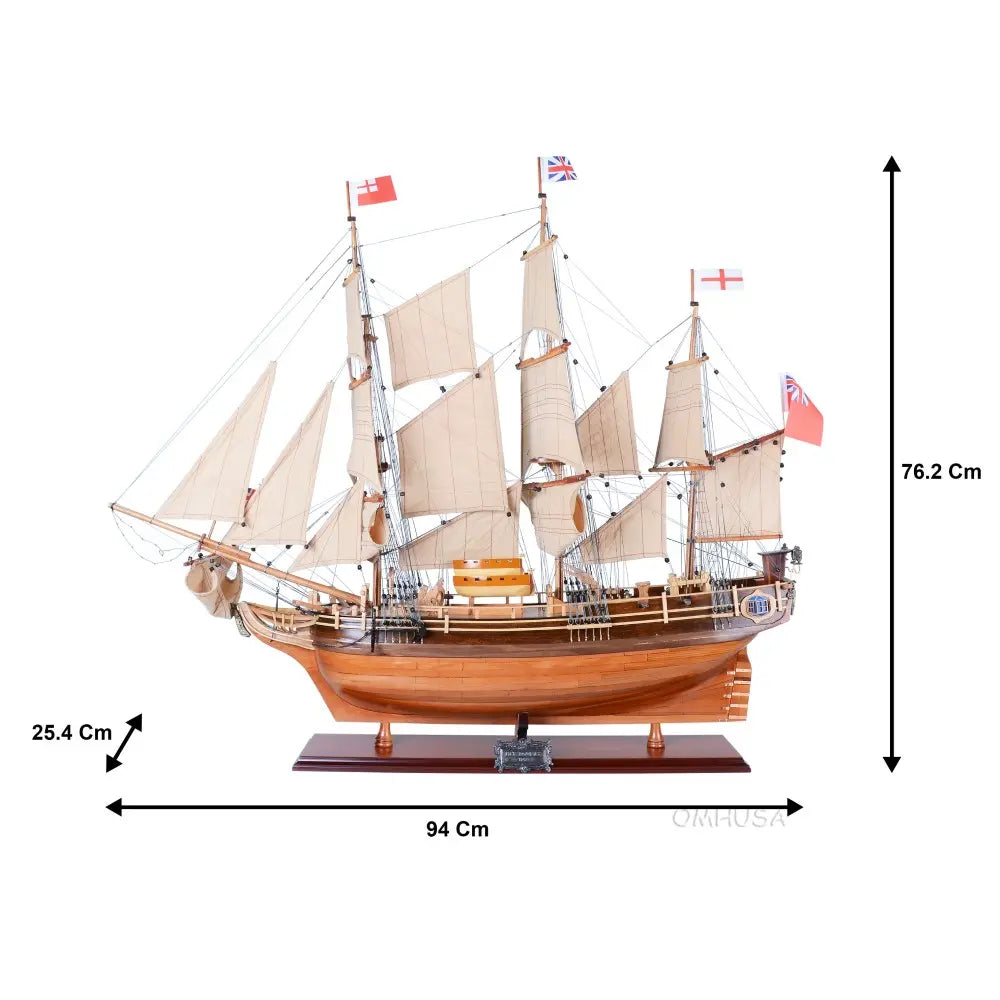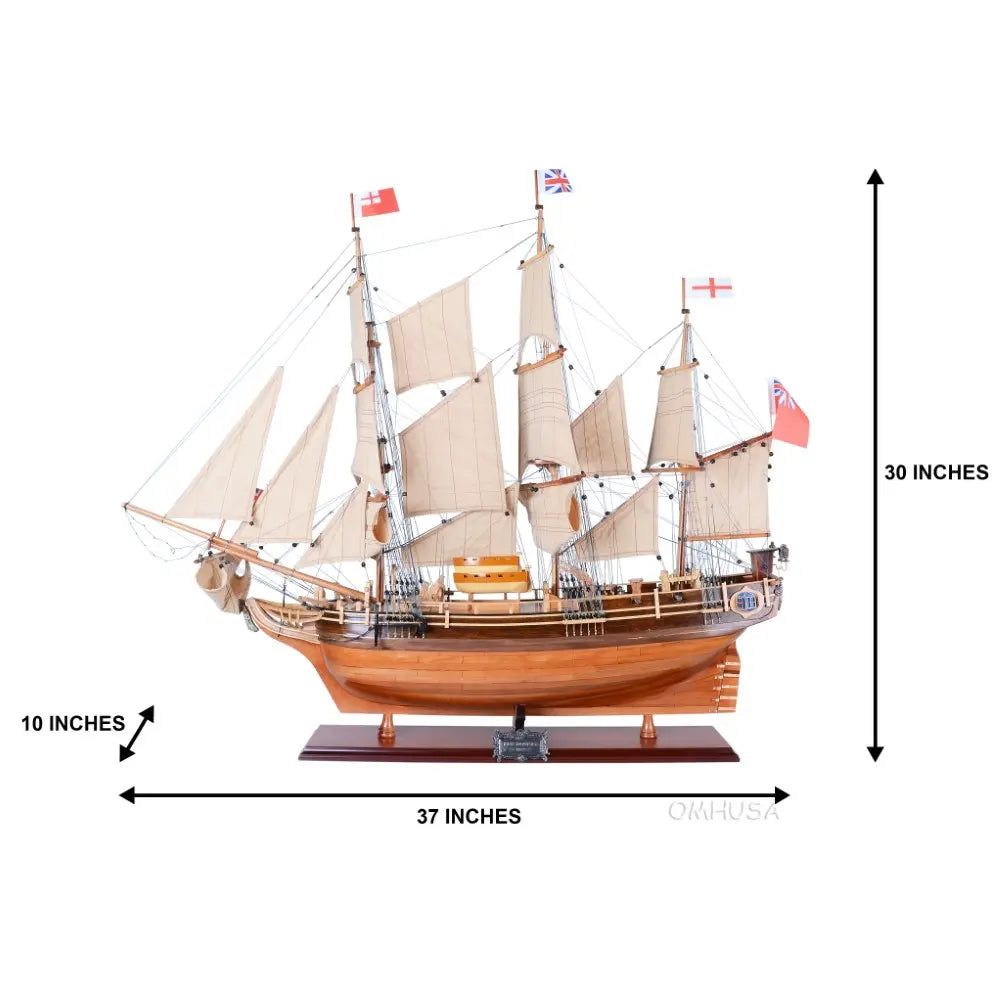 Model Ship 37" - HMS Bounty Tall Ship with Sails & Brass Details Display By Old Modern Handicrafts