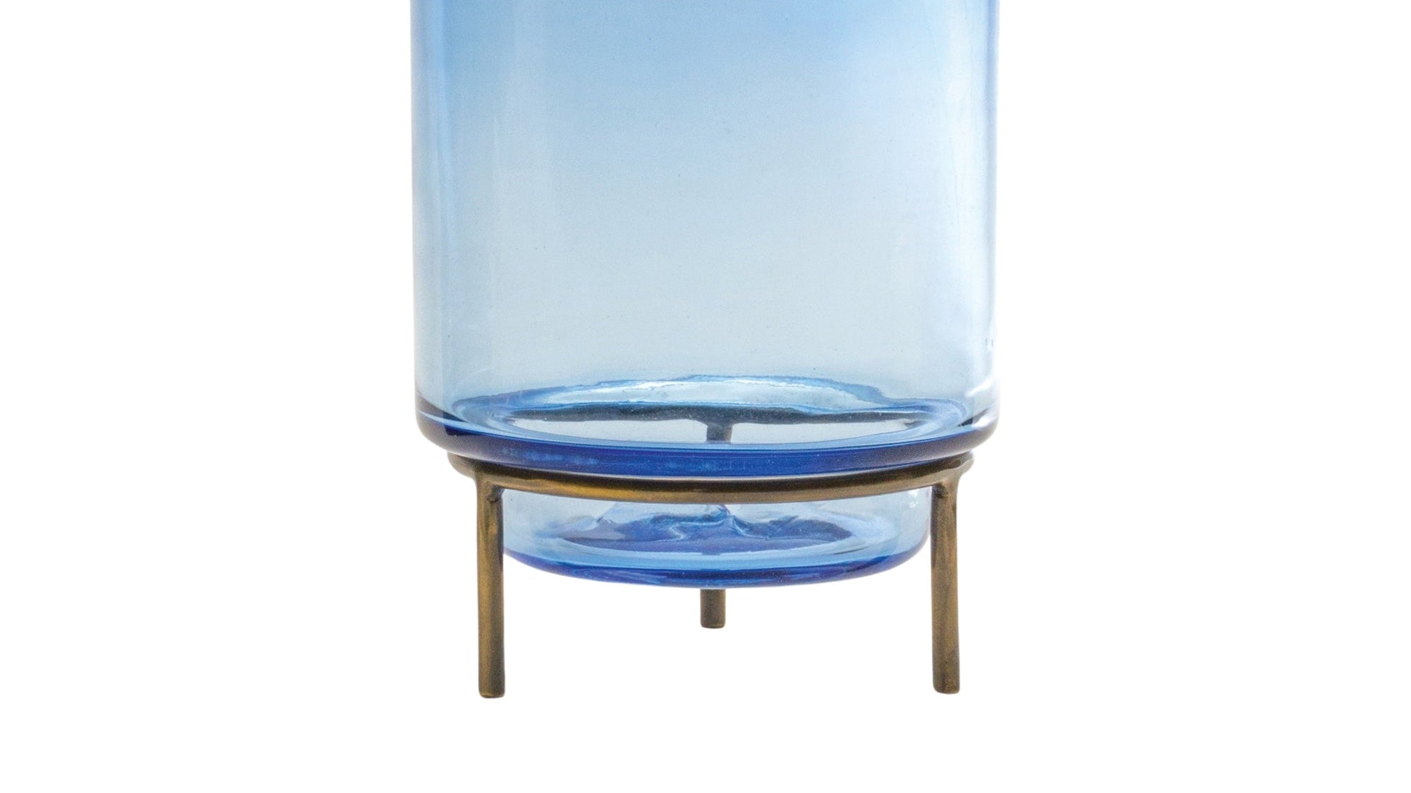 SKU - MEL-88161DSModern Glass Vase – 10"H Blue Cylinder with Metal Stand – Indoor Decor