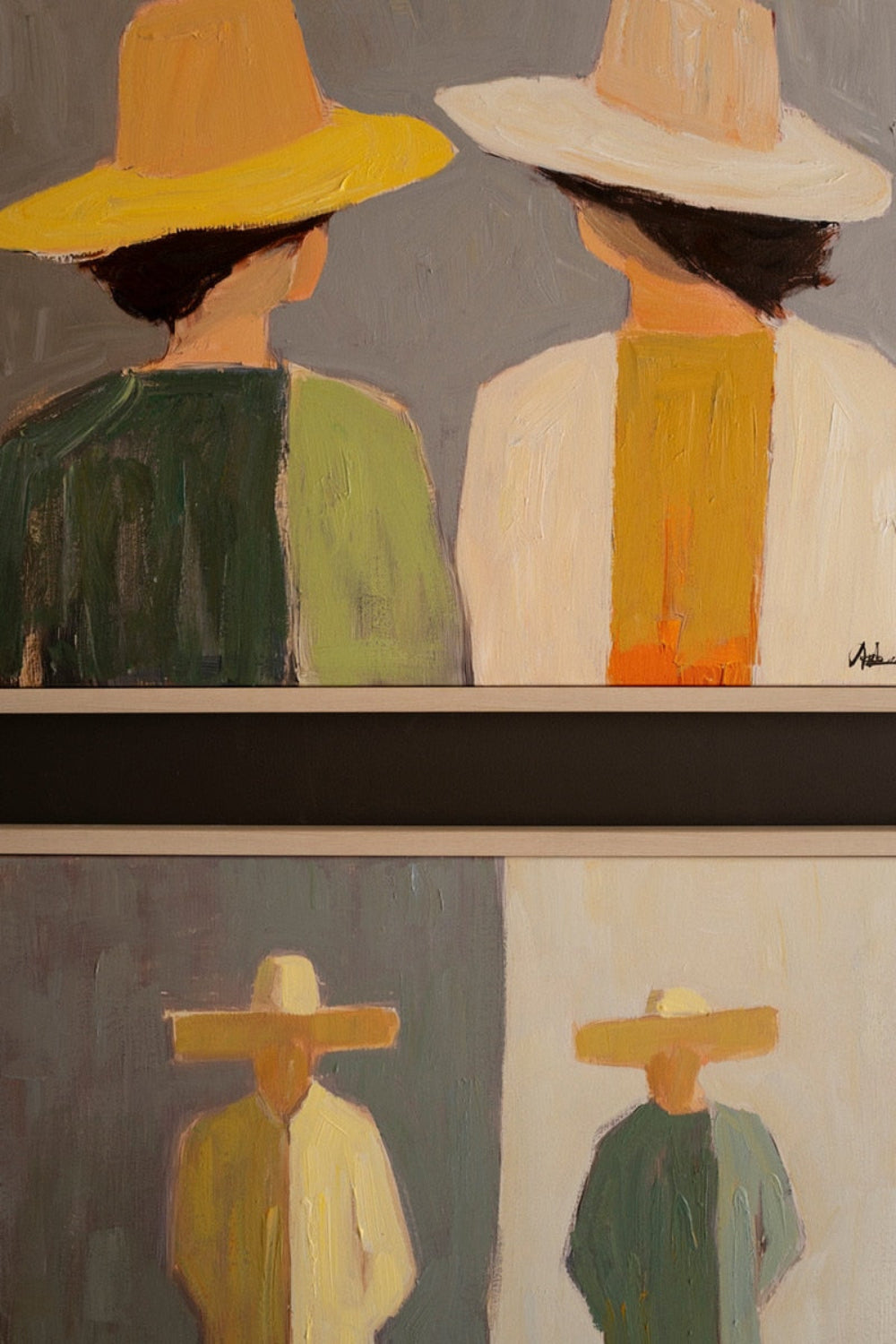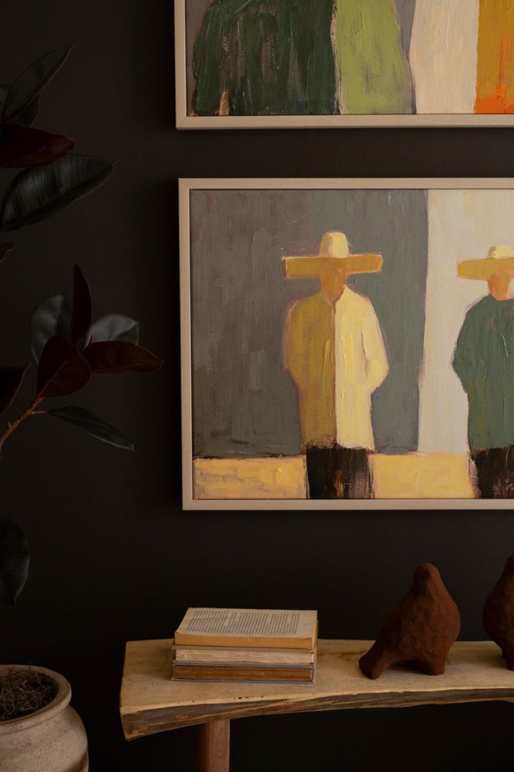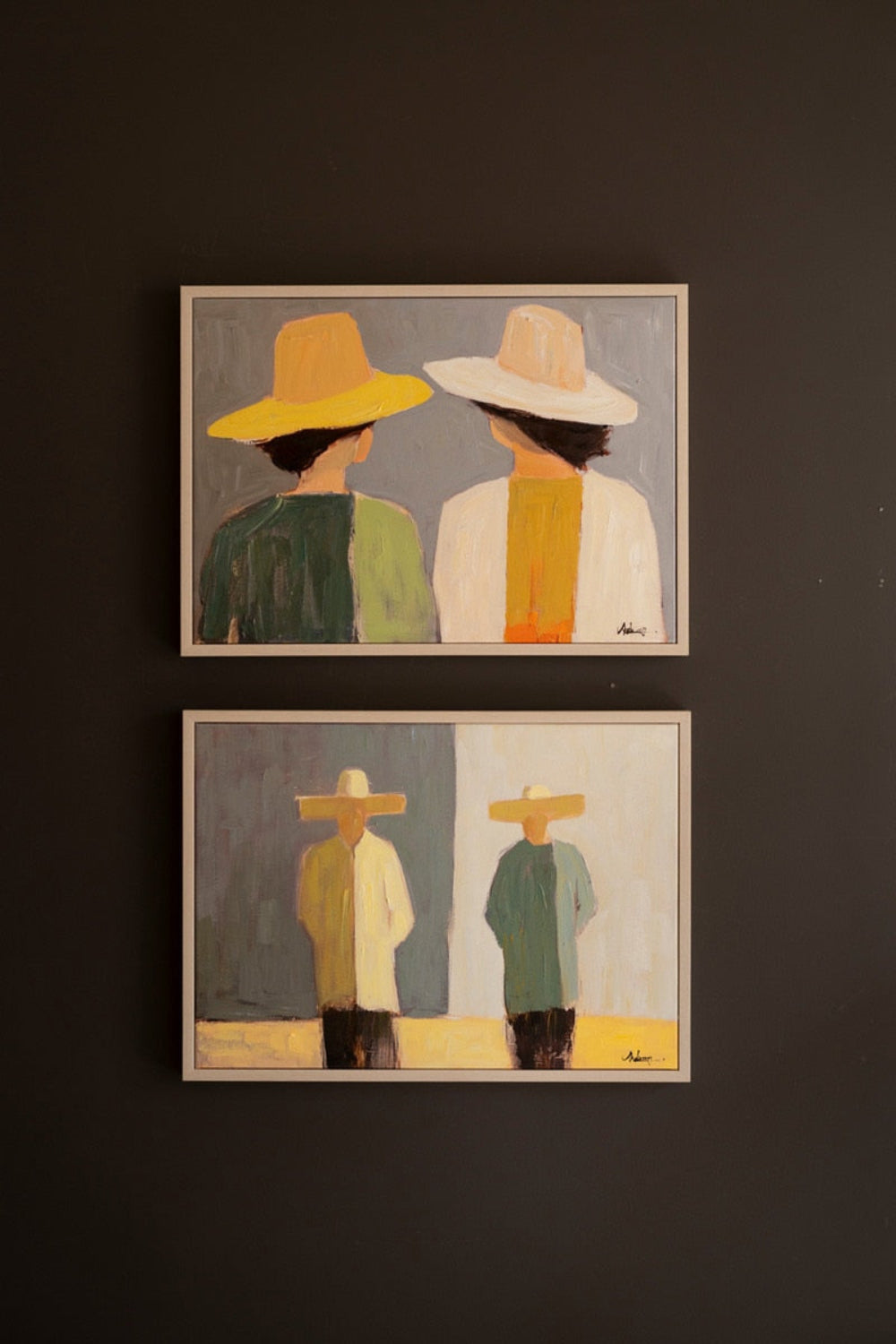 The Set of Two Framed Men and Women in Hats Paintings by Kalalou offers an elegant way to enhance your interior walls with artistic detail. Each framed portrait features a stylized figure wearing a hat, combining muted tones and minimalist brushwork. The paired design creates a cohesive visual story, suitable for modern, eclectic, rustic, or transitional room styles.Each artwork measures 29.5" W × 2" D × 26.5" H, making them versatile enough to display above seating areas, consoles, nightstands, or as part of a gallery arrangement. These framed pieces arrive ready to hang, simplifying installation and décor updates. Whether placed together or styled separately, this set brings a composed, refined aesthetic to any interior space.