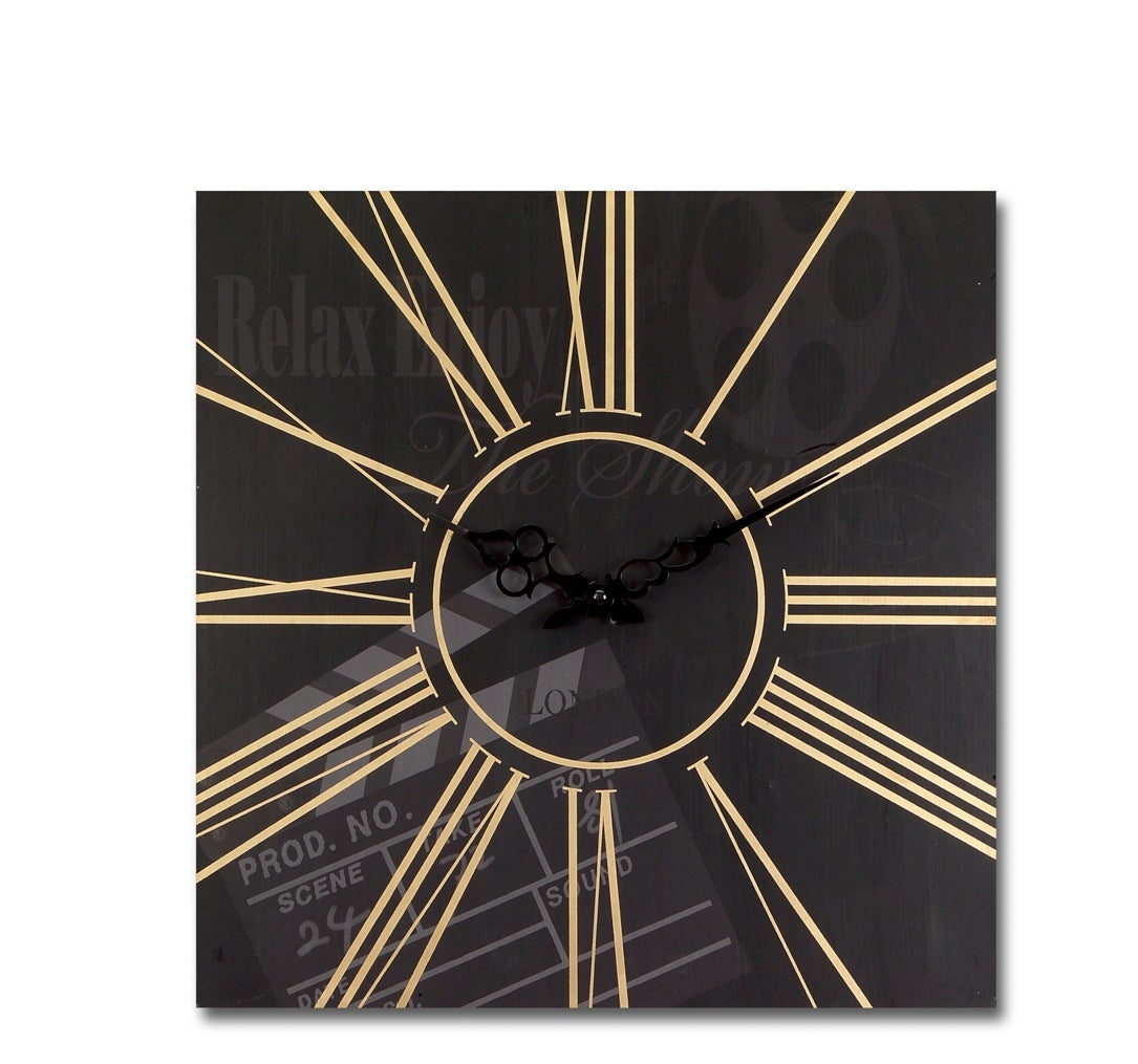 Enhance your interior with this movie theatre inspired wall clock set, featuring two matching 15.75"L x 1.75"W x 15.75"H clocks crafted from durable MDF. Designed with a matte black background and gold detailing, each clock includes a Roman numeral face that adds a bold, cinematic touch to your decor. Ideal for home theatres, game rooms, or family rooms, these clocks bring a stylish focal point to any wall. Their lightweight construction makes them easy to hang, and each clock requires one AA battery (not included). Perfect for creating a coordinated display, this set delivers both function and modern design for your home.