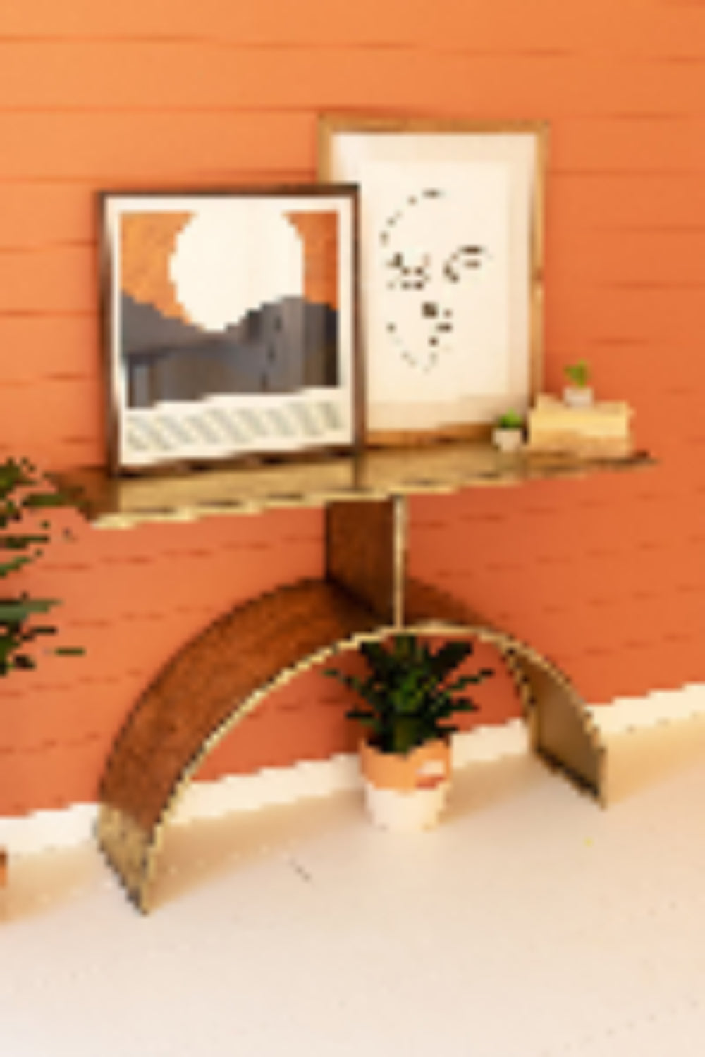 Narrow Antique Brass Hallway Table 33" Tall by Kalalou