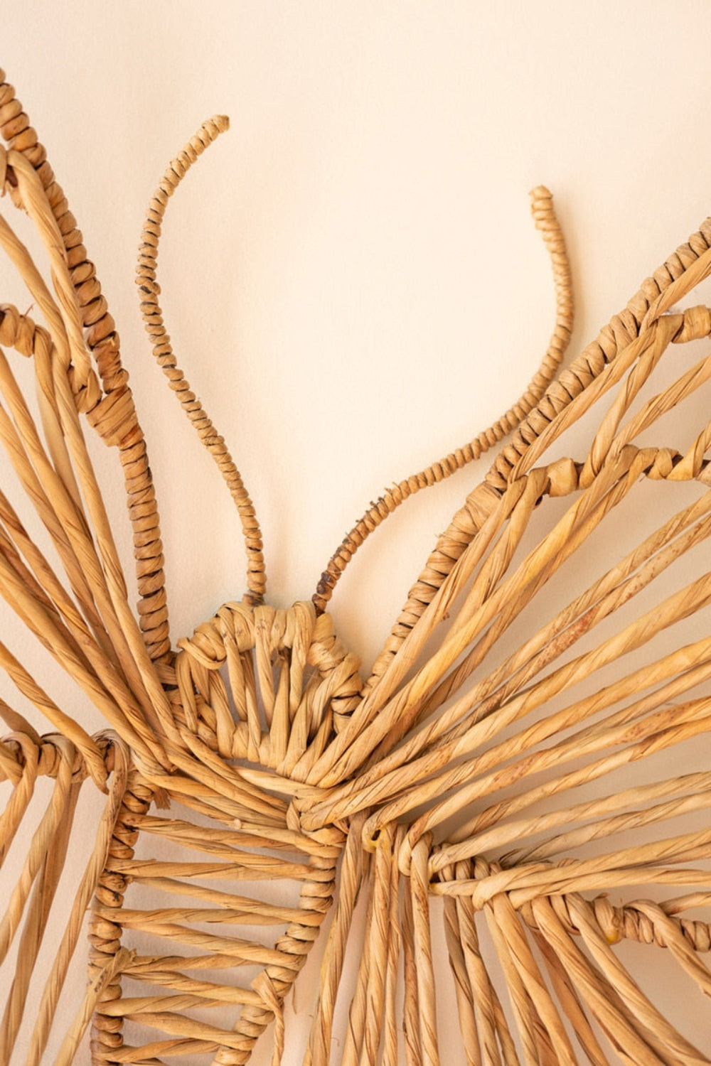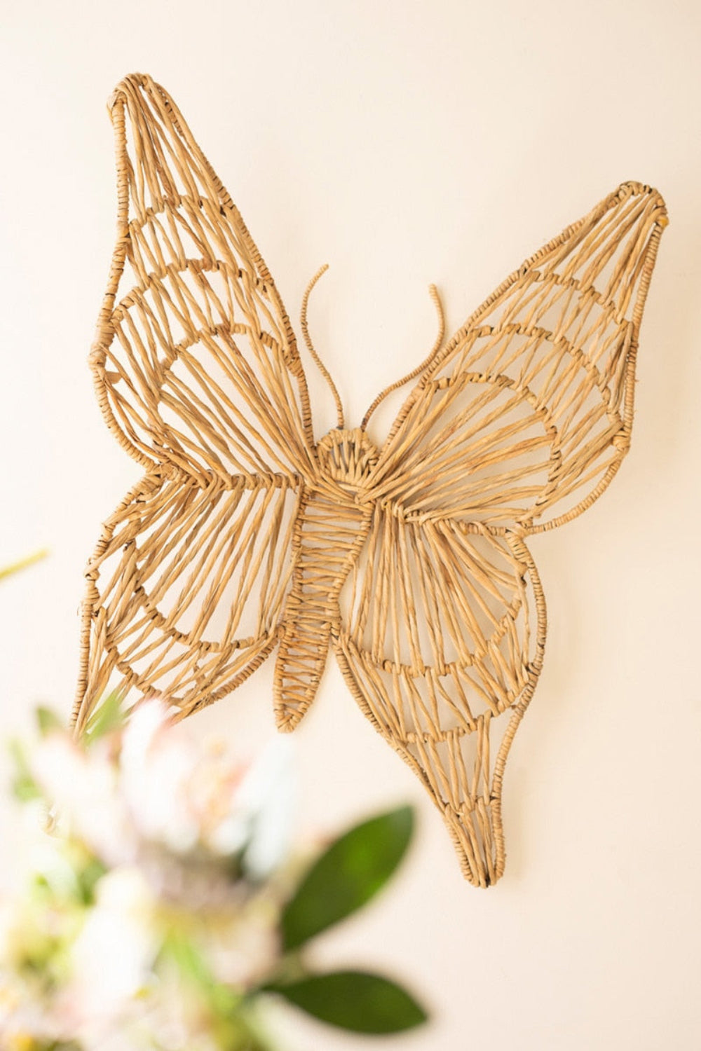 Natural Woven Butterfly Wall Decor – Iron Frame – 11" Tall by Kalalou