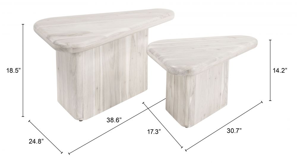 SKU - ZUO-109872Navidic Coffee Table Set – 2-Piece 18.5" H, 14.2" H, Whitewashed Acacia Wood