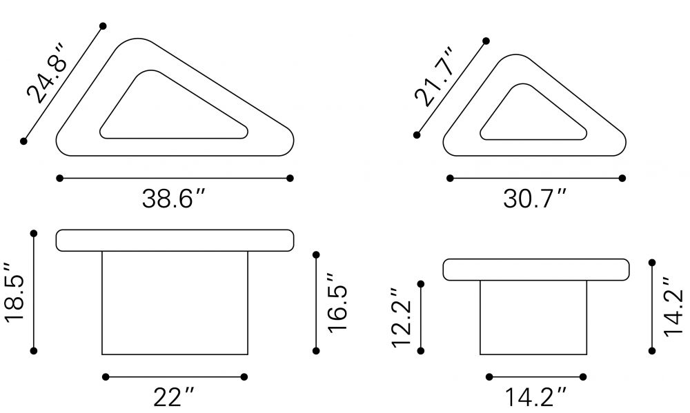 - 2-piece coffee table set with triangular tabletops for versatile arrangement options
