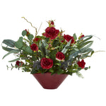 SKU - NN1769-RD SKU - NN1769-WH16`` Rose And Eucalyptus Artificial Arrangement In Vase By Nearly Natural And Sold By Uber Bazaar