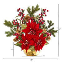 SKU - NN1992 17`` Poinsettia, Holly Berry And Pine Artificial Arrangement By Nearly Natural And Sold By Uber Bazaar