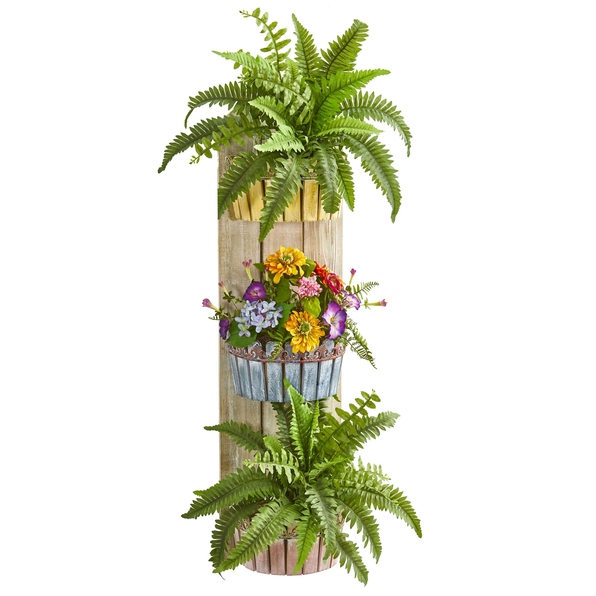 Nearly Natural 8350 39" Artificial Mixed Floral & Fern Plant in Three-Tiered Wall Decor Planter, Multicolor