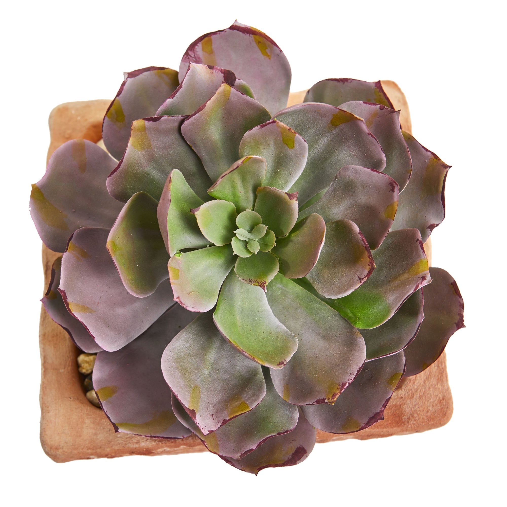 Nearly Natural 8446-S2 9" Artificial Green & Purple Mixed Succulent Plant in Terra Cotta Planter, Set of 2