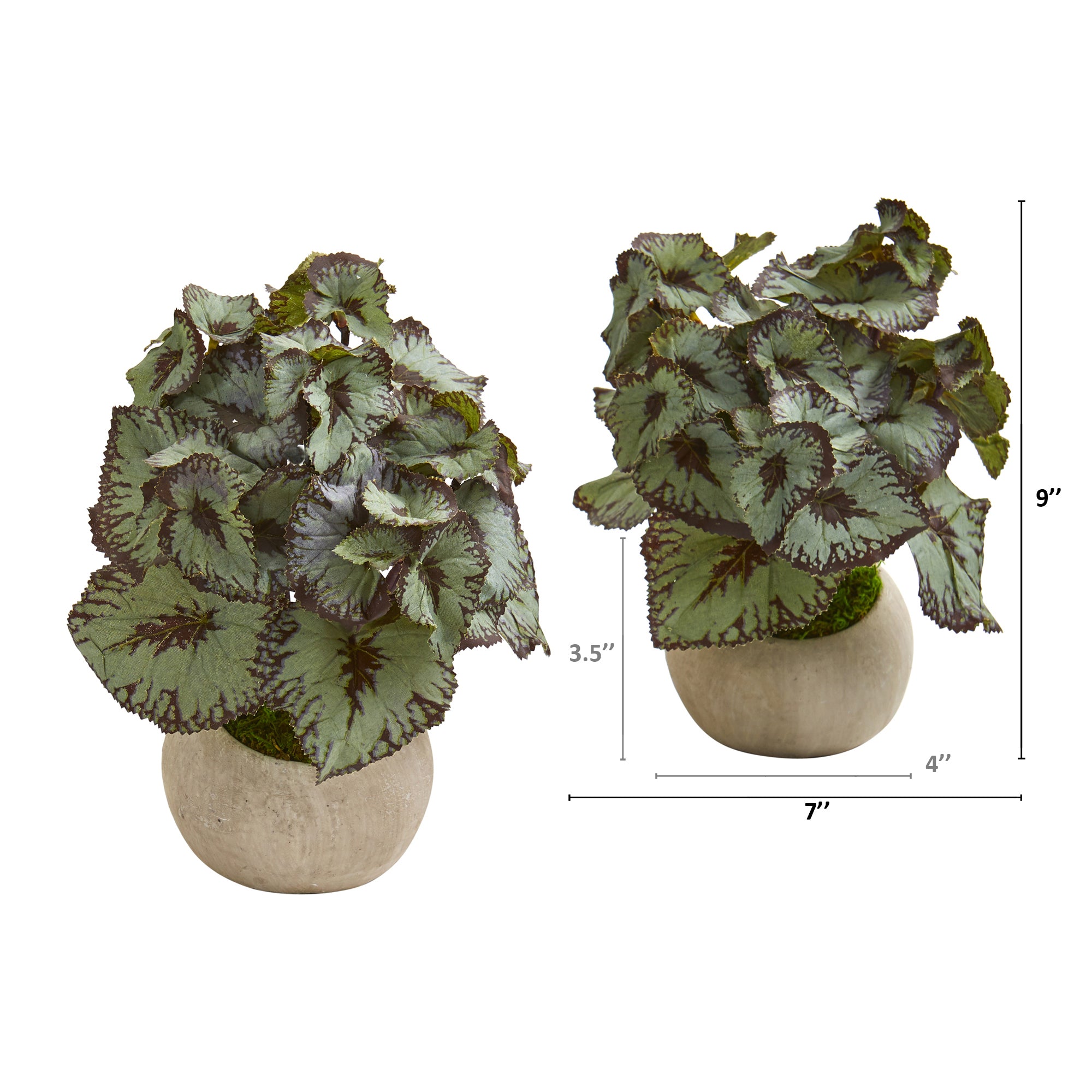 SKU - NNP1181-S29`` Rex Begonia Artificial Plant In Stone Gray Planter (Set of 2) By Nearly Natural And Sold By Uber Bazaar
