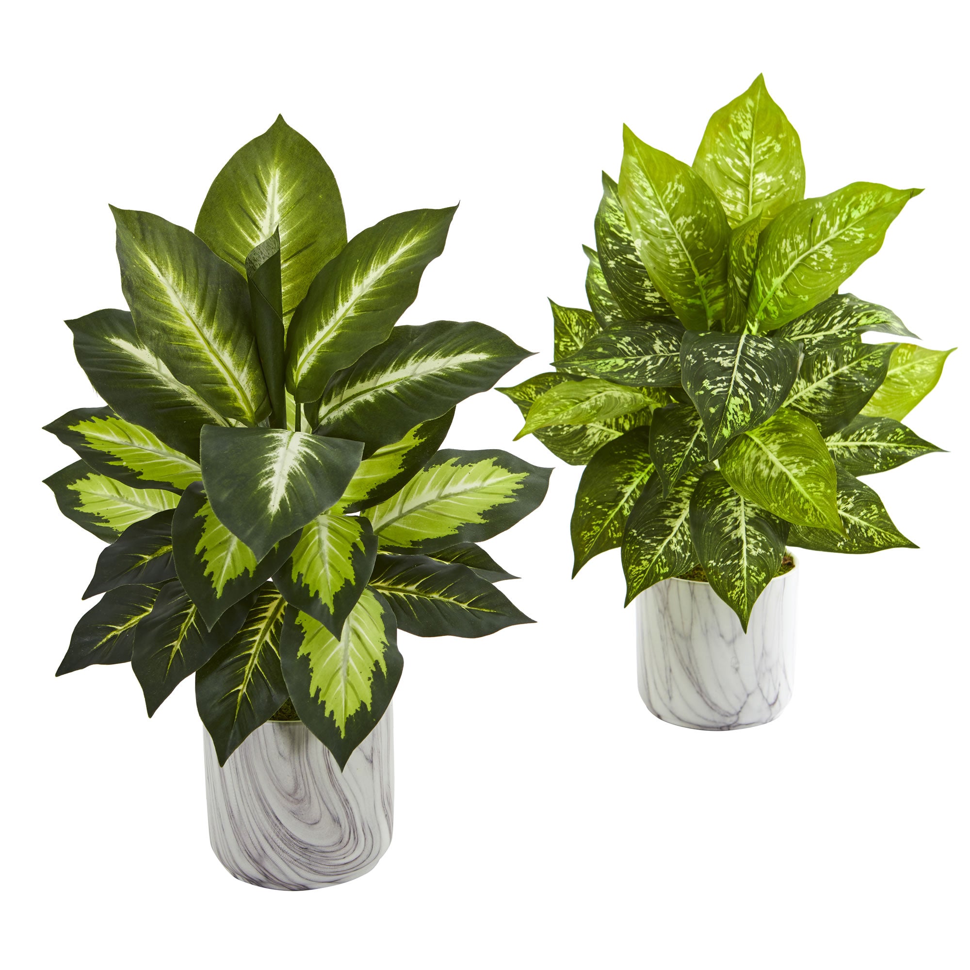 Nearly Natural 8190-S2 20" Artificial Green Dieffenbachia Plant in Marble Finish Planter, Set of 2
