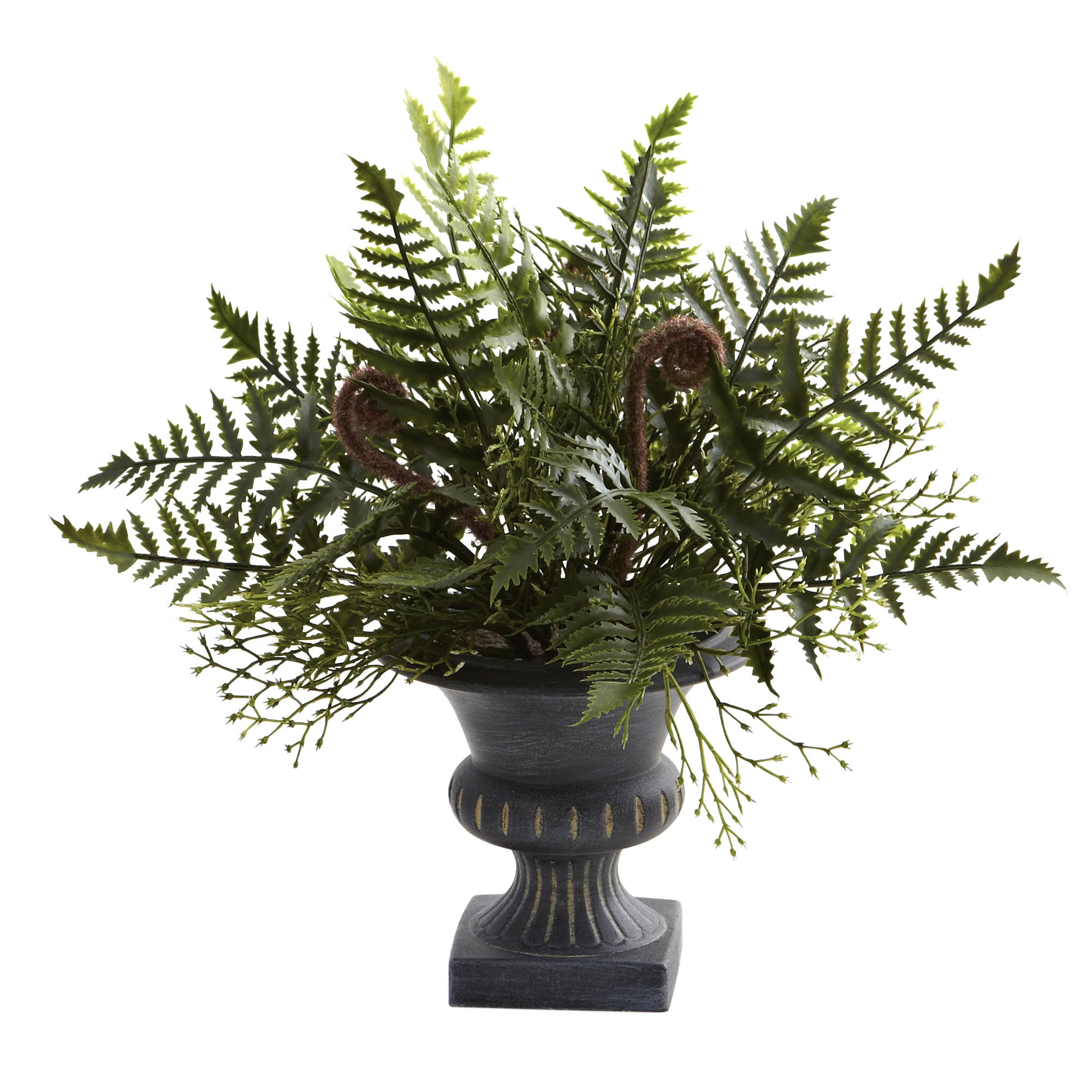 Ferns just capture nature at it's finest, don't they. They are so lush, so leafy, so delicate, and yet so full of life as well. This fern mixture captures all of that, and combines them into a cornucopia of shapes and textures bursting forth from a stately, decorative urn. This is a set of three, so you have all kinds of decoration possibilities, too. Perfect for both home and office