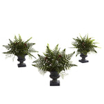Nearly Natural 4976-S3 10" Artificial Green Mixed Fern Bush with Urn, Set of 3