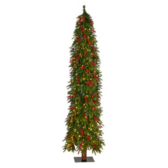 Want to feel nostalgic for Christmas? If you love Christmas but want a trendy alternative to the classical wreath, this half wreath is a better choice. Soft, hued evergreens are accented by pinecones and white berries. Crafted from high-quality materials, this faux wreath will last a while. With a diameter of 28``, house in a door or lonely wall. Hang close to the Christmas tree for a magical look