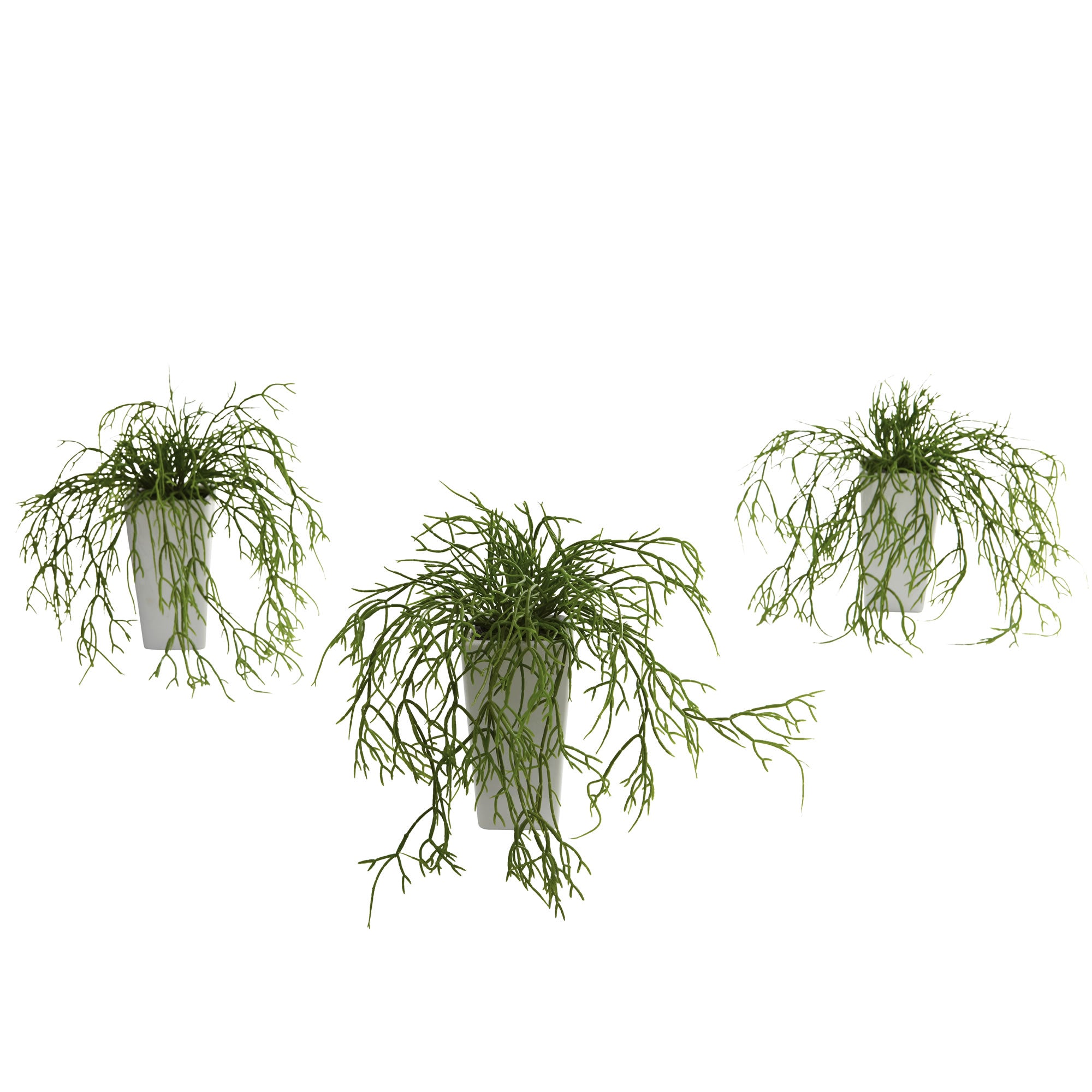 Wild grass comes in many forms and textures. Some grow high, and others stay low. This wild grass set is of the latter type, with the blades sprouting up and over the included decorative planters. The green of the grass perfectly accents the white of the vases, making for a very versatile decorating piece. Plus, this is a set of three, so you can put one here, there, and everywhere
