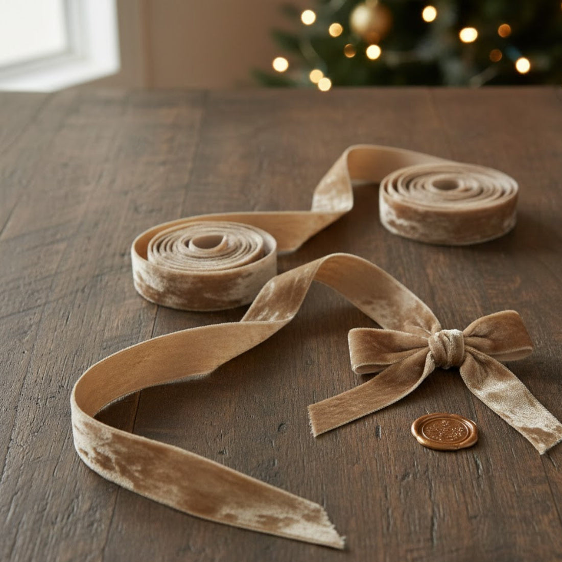 SKU - MEL-94315DSNeutral Raw Edge Velvet Ribbon 2"W x 10 Yds by Melrose