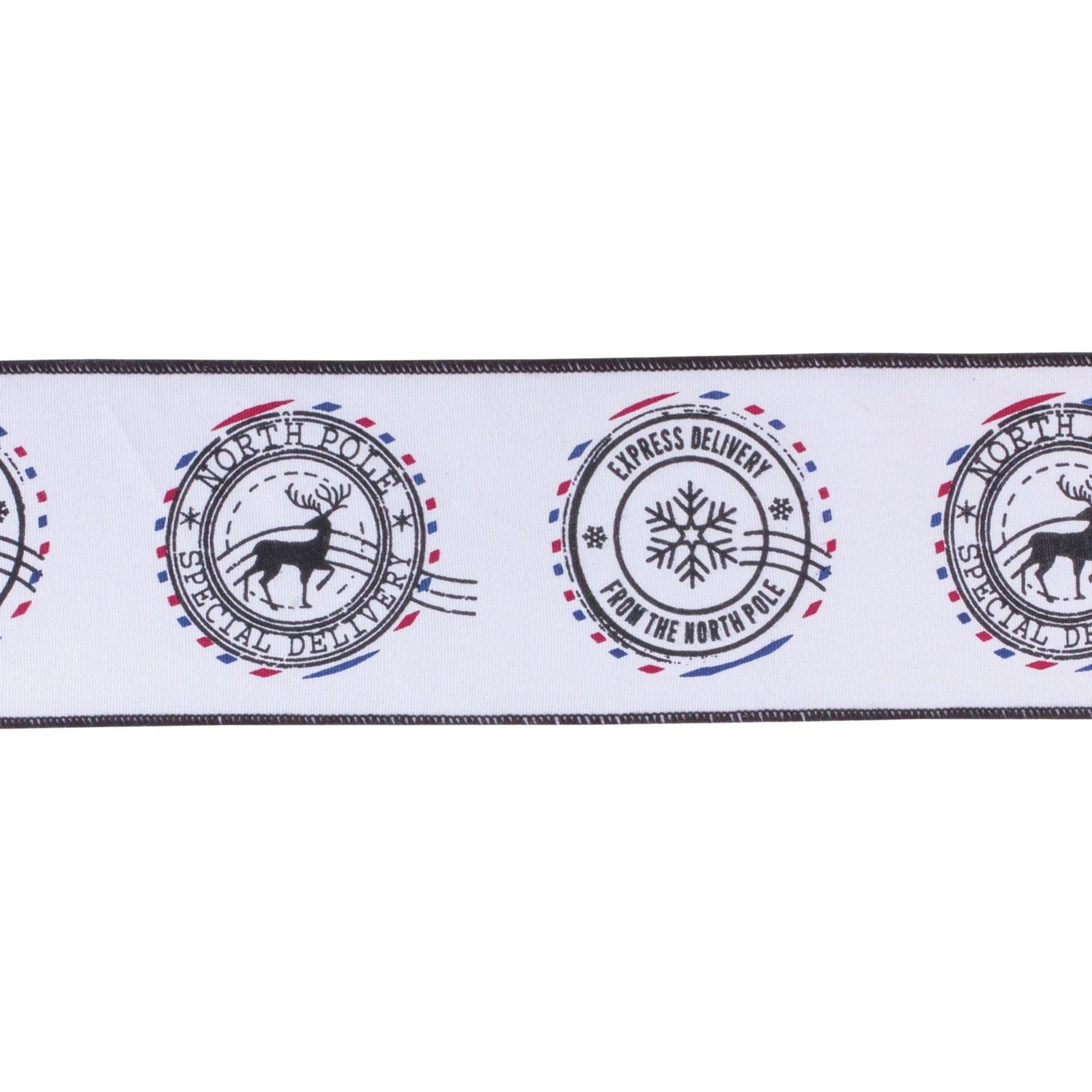 North Pole Holiday Ribbon Set – 4" x 5 Yards Wired Cotton Christmas Postal Decorative Ribbon (Set of 2) by Melrose