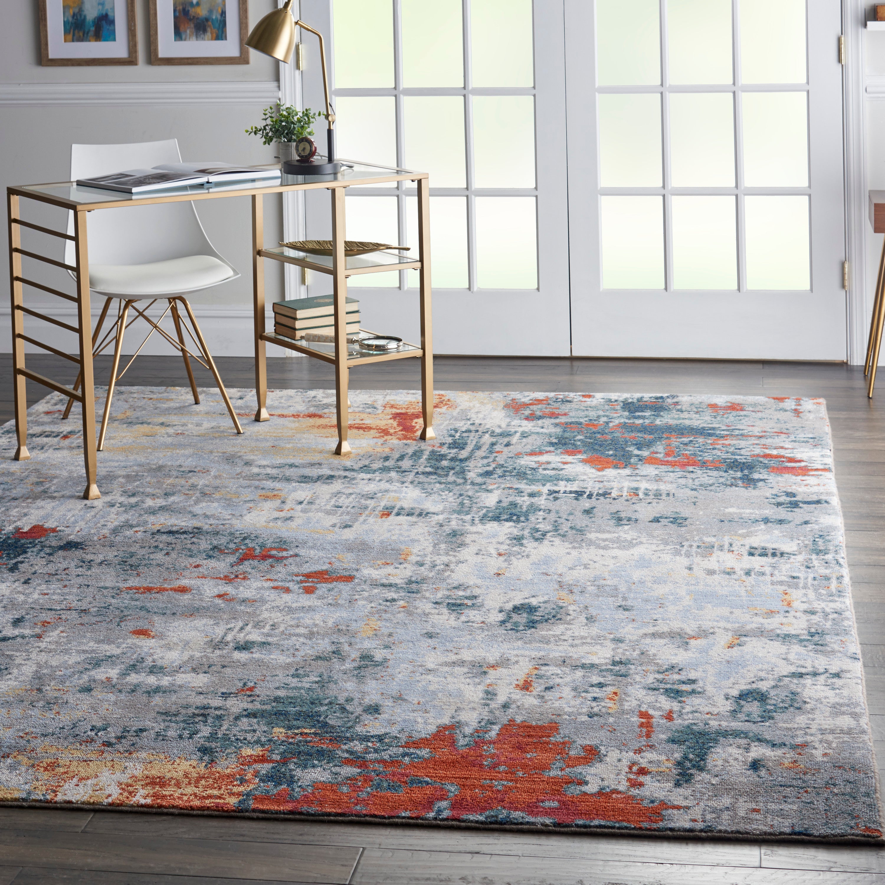 Gleaming colors seem to pool and swirl in this fascinating Artworks Collection contemporary rug. Its exciting abstract design is enriched by superb cut-pile texture and the richly pigmented, slate and brick multicolor palette. Each rug features top quality New Zealand wool blended with a touch of Luxcelle for exceptional durability with added texture and sheen.