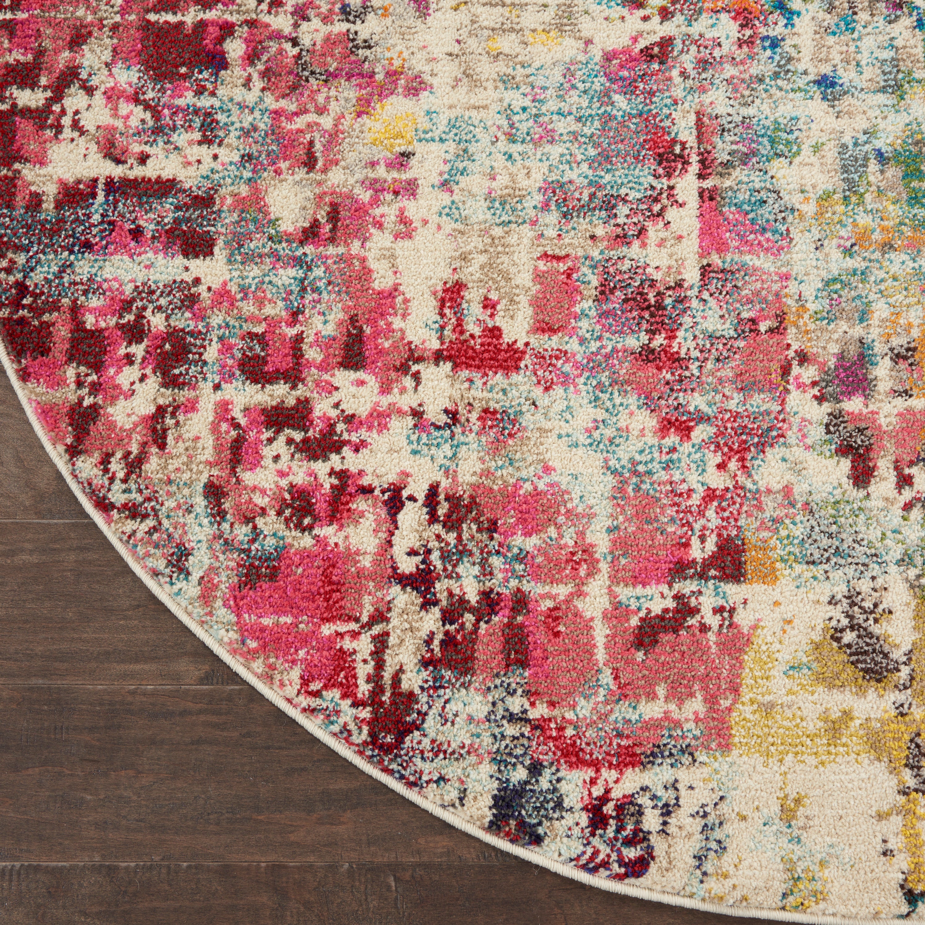 Bright colorful tones and distressed effects make this Celestial Collection rug an eye-catching artistic statement. The beautifully bohemian tones and silky texture add a note of casual comfort to any room in the home.