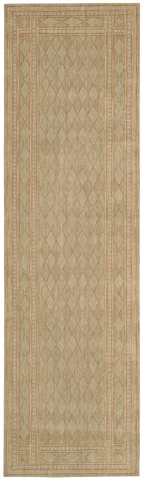 Airy, light-filled hues of wheat, coral, chestnut and celadon lend an easy elegance to a classically bordered precise diamond design. Exquisite hand carving imparts an extraordinary tone, texture and dimension.