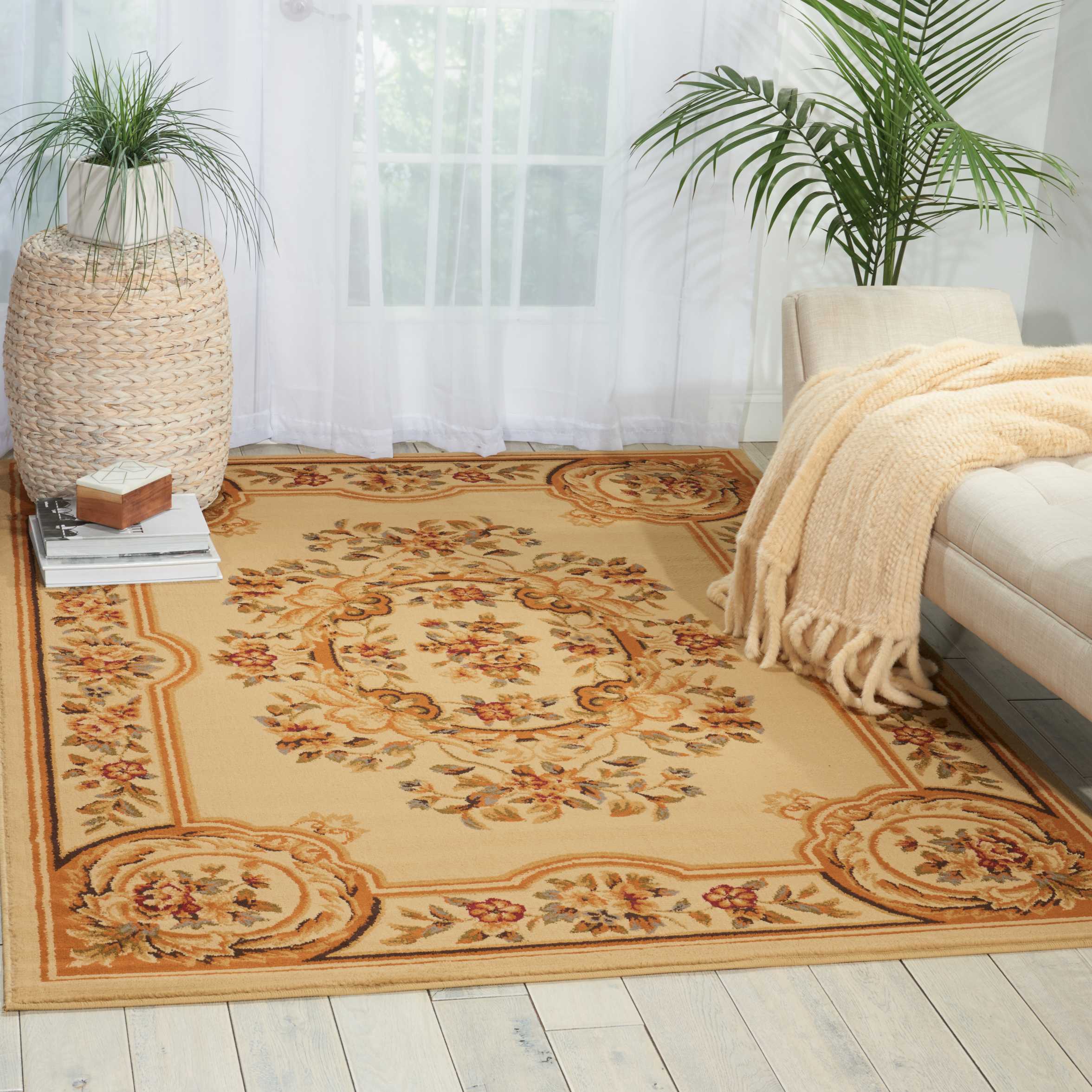 This elegant floral-patterned area rug is an ideal accent for any decor. A beautifully ornate floral centerpiece enraptures the eyes on an attractive beige background. This rug is sure to add a striking note of sophistication to any room.
