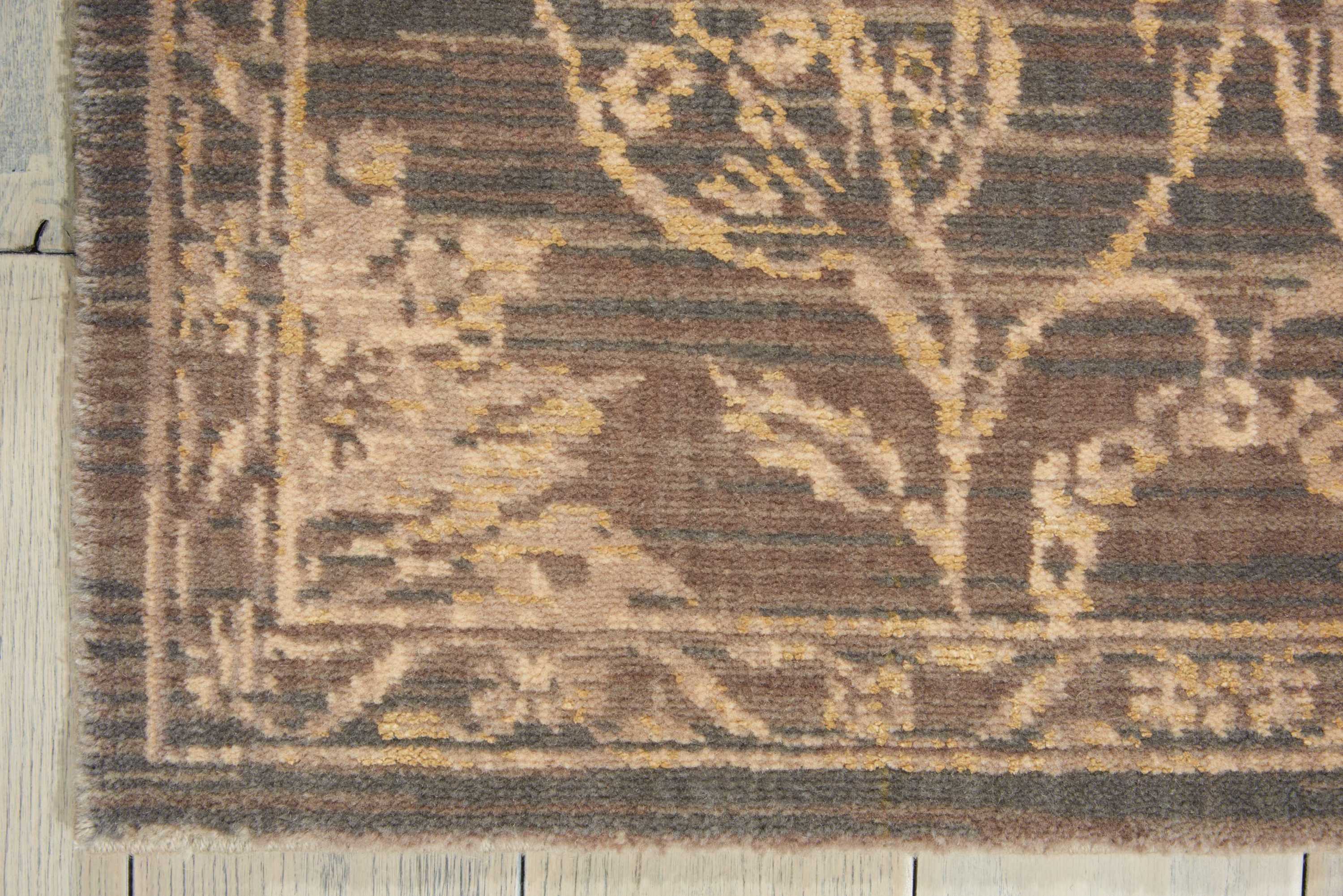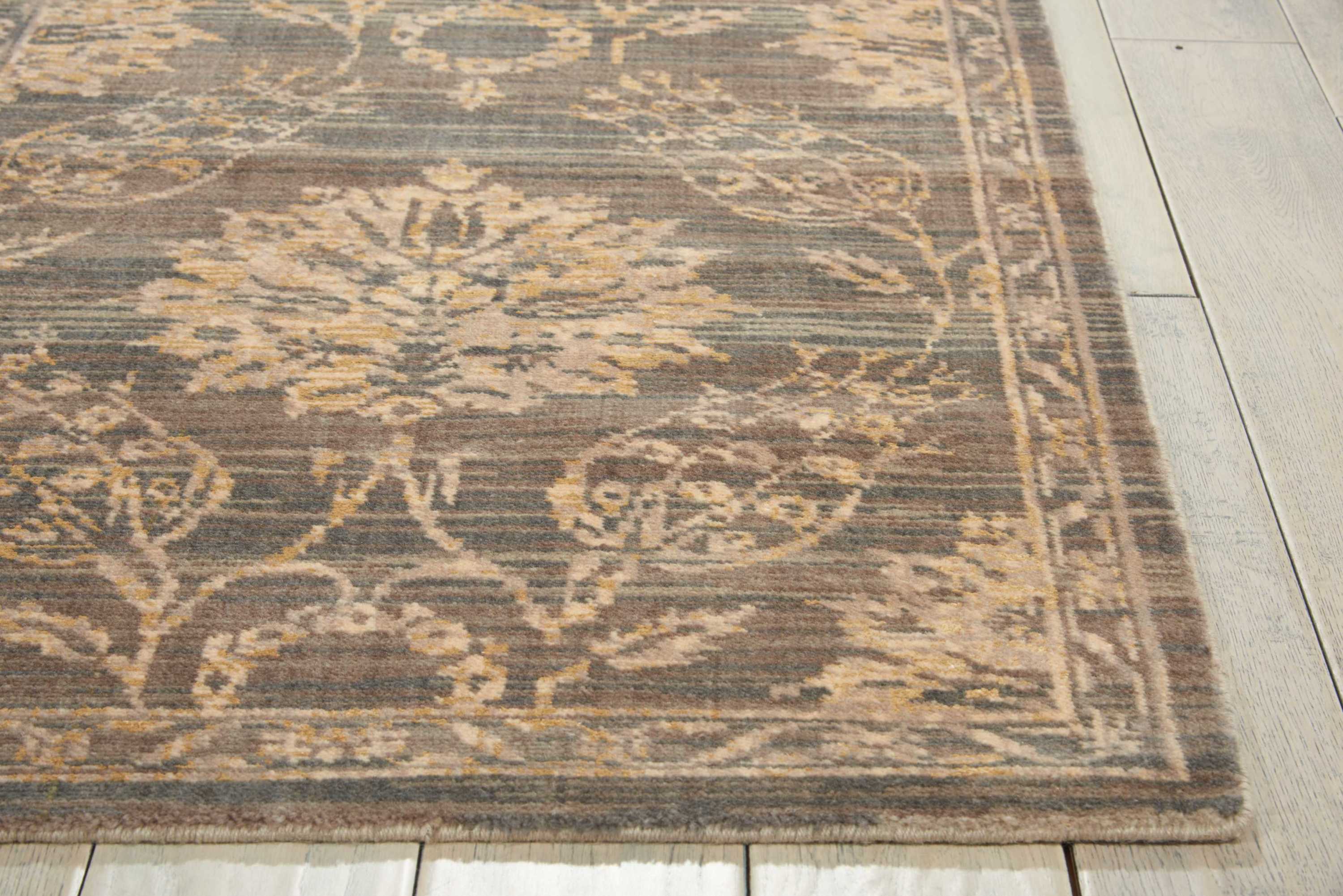 This oversized ornamental leaf and floral design is beautifully bordered and presented in dramatic shades of ecru and graphite. Fabricated with lavish silk components and an abundantly plush pile for a tone and texture that are the ultimate in indulgence.