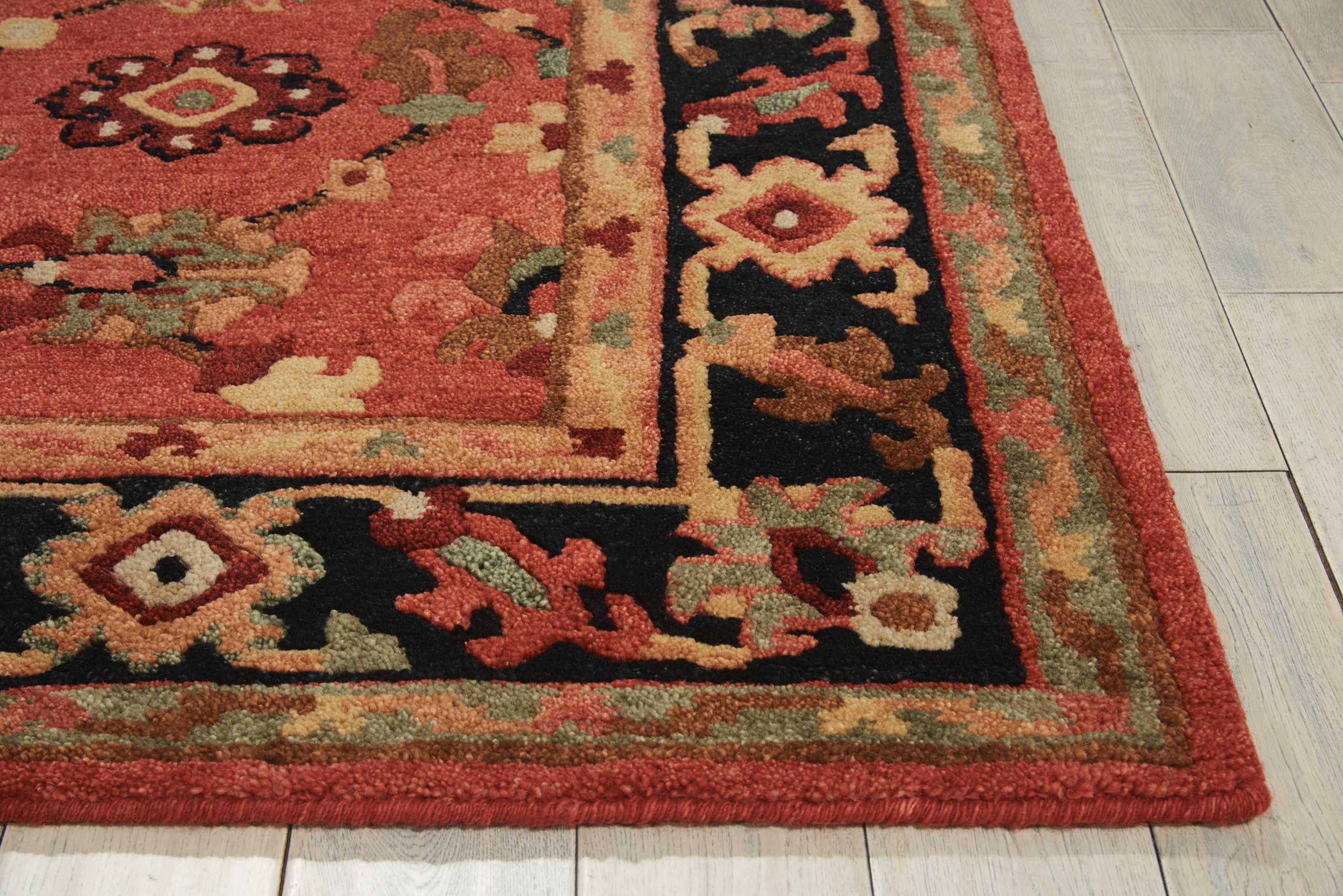 Delightfully engaging both in color and design, this richly detailed rug pulsates with life and invites lounging on its thick, soft expanse. Stylized shapes grow in animated profusion on the lushly patinated rust-red ground. Tender greens, bold anthracite and gleaming ivory balance the sophisticated palette.