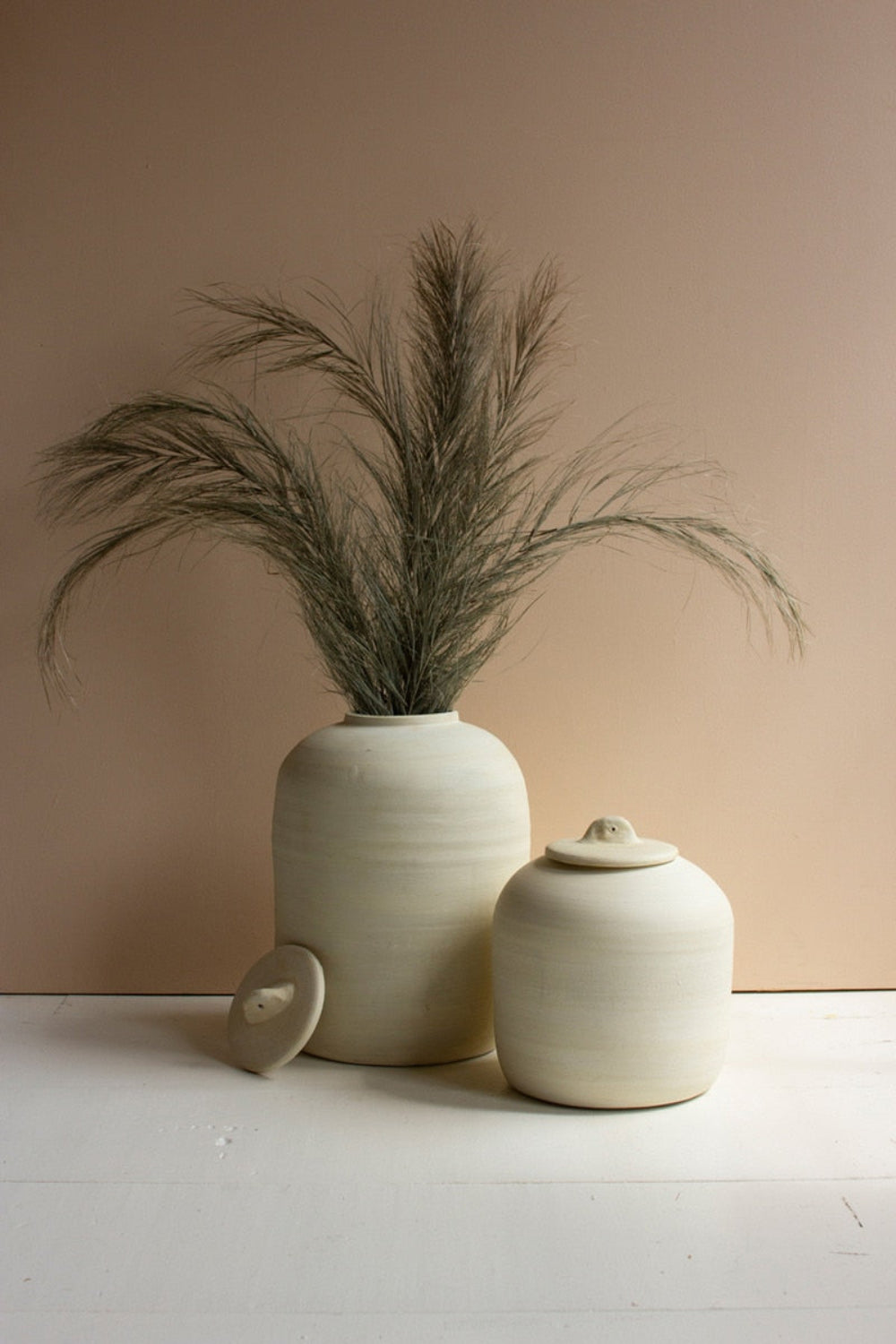 SKU - KAL-CPH3525Off-White Storage Canisters – 16" Tall Decorative Set of 2