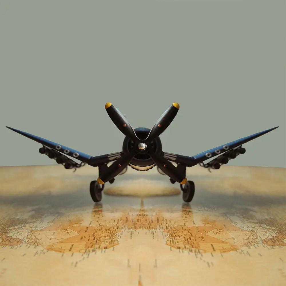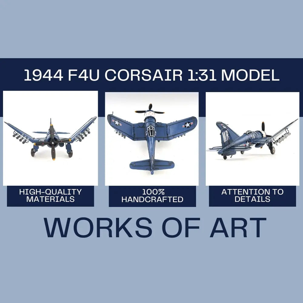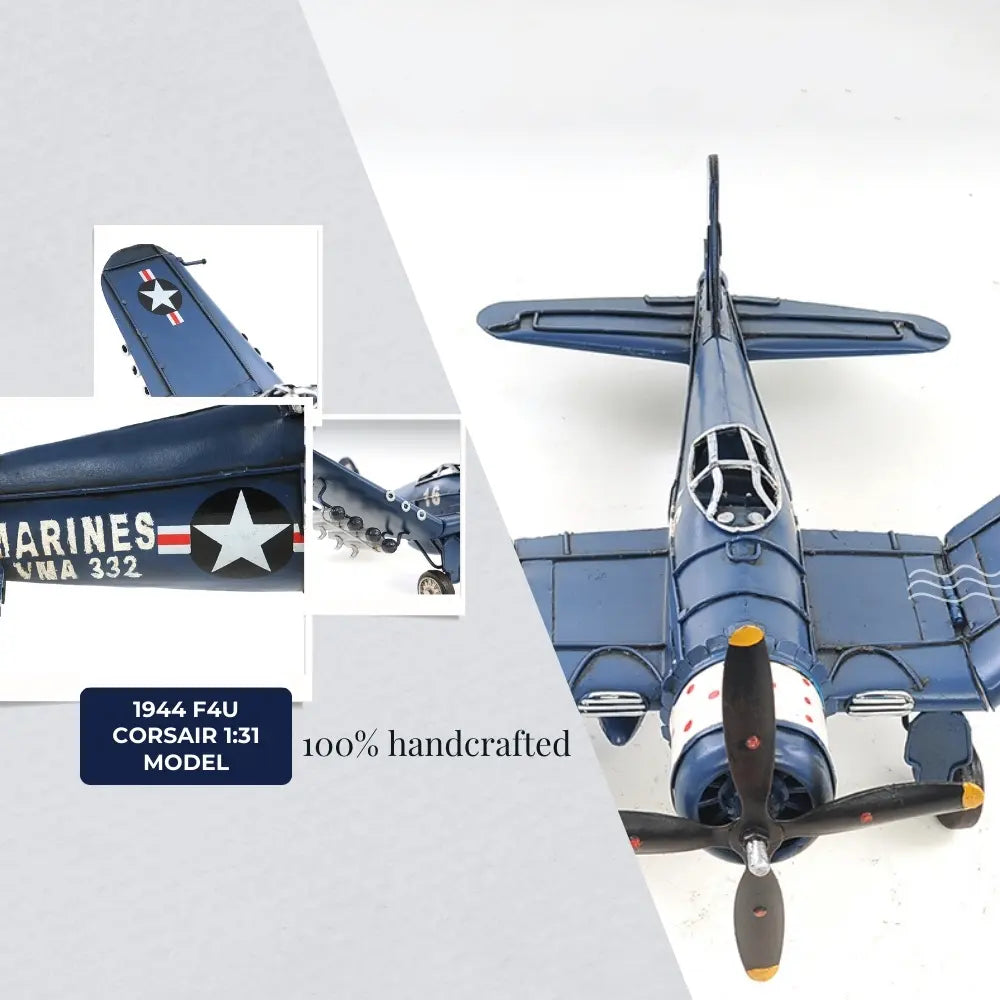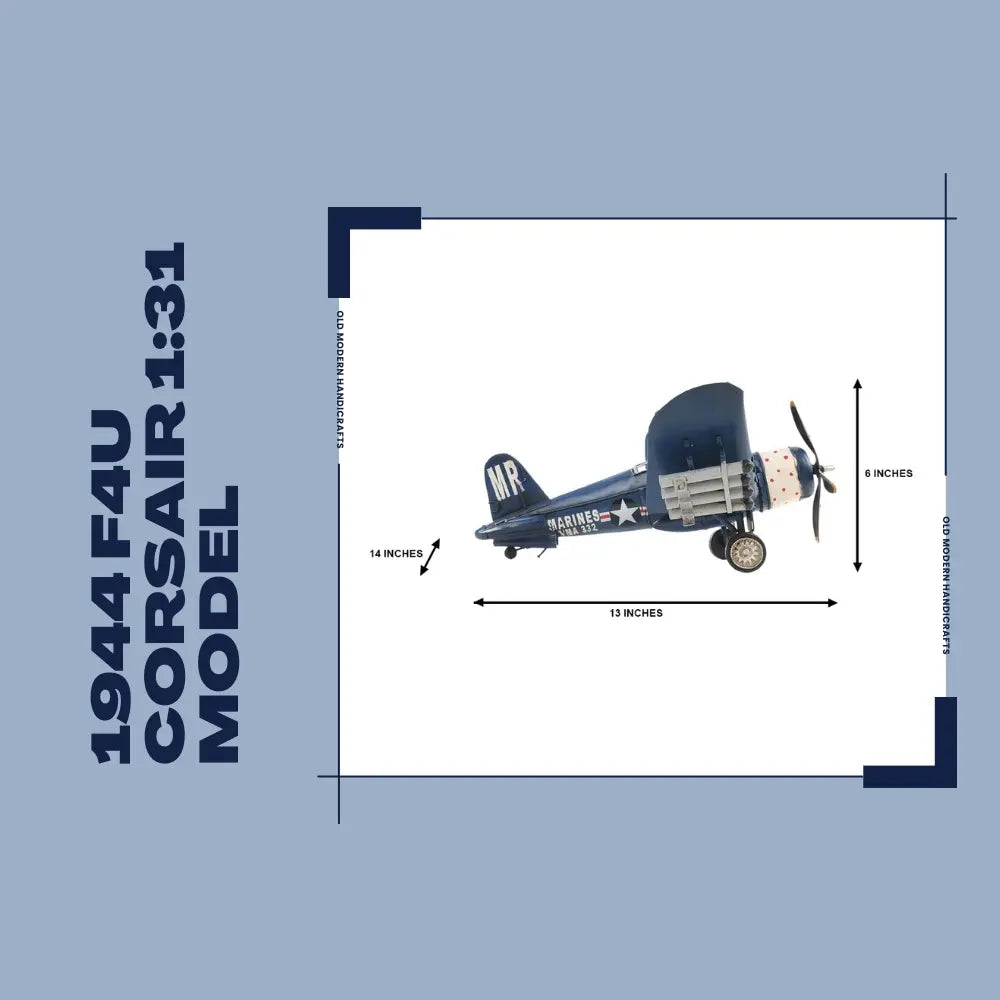 Old Modern Handicrafts 1944 F4U Corsair Scale Model – 1:31 Iron Aircraft with Spinning Propeller, 13"