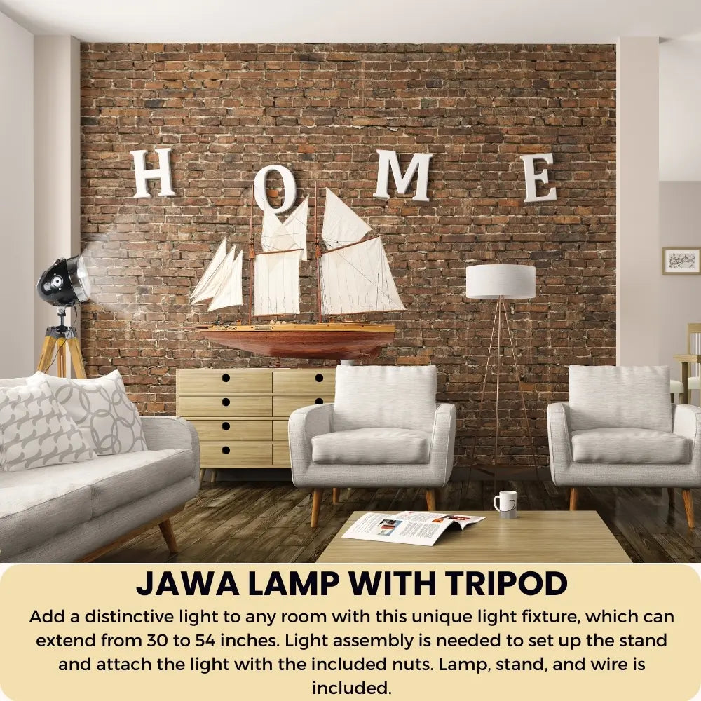 Bring a unique touch to your space with the Jawa Lamp with Tripod, featuring the iconic headlight of a Jawa CZ motorcycle. Standing 35 inches tall, this adjustable lamp extends from 30 to 54 inches for versatile placement. Crafted for motorcycle enthusiasts and design lovers, the lamp is easy to assemble: attach the stand and secure the headlight with included nuts. The tripod base provides stability while highlighting the industrial and retro aesthetic of the Jawa motorcycle heritage. Complete with wiring and lamp components, this fixture is ready to illuminate living rooms, offices, or themed spaces. A perfect combination of vintage motorcycle charm and functional lighting.