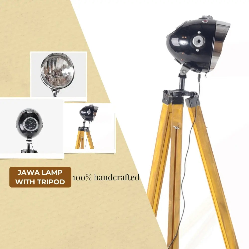 Jawa Lamp with Tripod – 35 Inch Height – Motorcycle Headlight Design By Old Modern Handicrafts