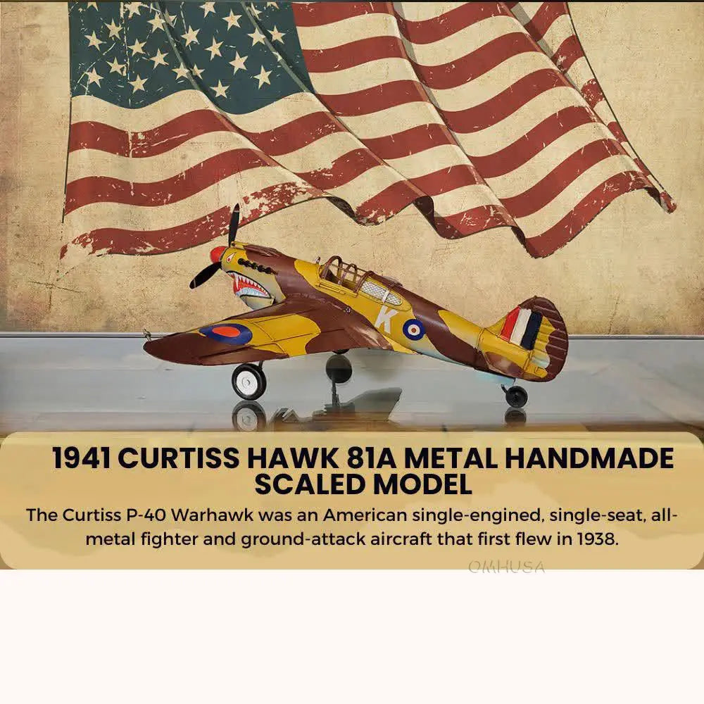 1941 Curtiss Hawk 81A Metal Aircraft Model Handmade 1:22 Scale WWII Decor 17.5 Inch