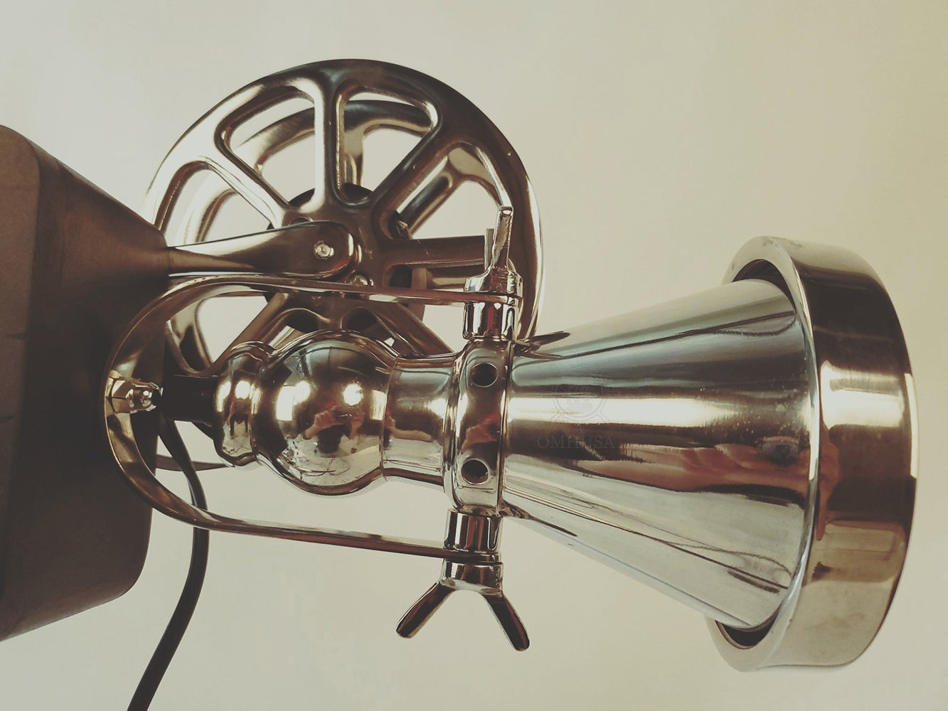 Aluminum Display Projector Lamp 36 Inch H – Vintage Cinema Style with Wood Base By Old Modern Handicrafts