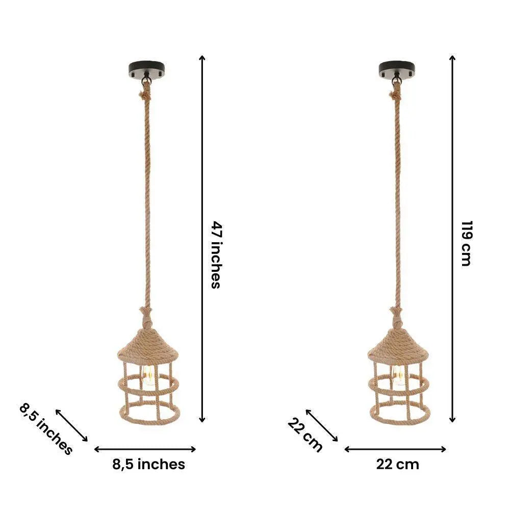 Bring nautical charm and modern elegance into your home with the Rope Pendant Lamp, standing 47 inches tall and enclosed in a beautifully woven hemp rope cage. Crafted from durable iron and natural hemp, this pendant light combines rustic materials with contemporary design for a balanced aesthetic. The enclosed rope pattern not only adds visual texture but also protects the bulb, making it ideal for coastal, rustic, or modern interiors. Designed with an E26 bulb base and supporting up to 40W, it offers the flexibility of plug-in or hardwire installation (bulb not included). Perfect for dining rooms, lofts, or entryways, this pendant delivers warm, ambient light with an artisanal touch.