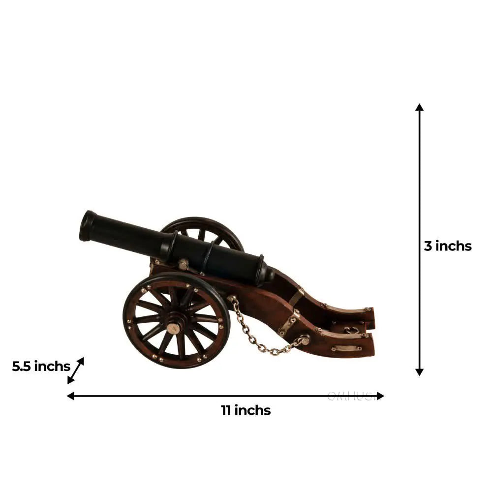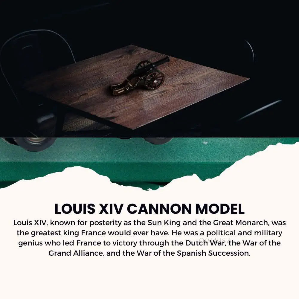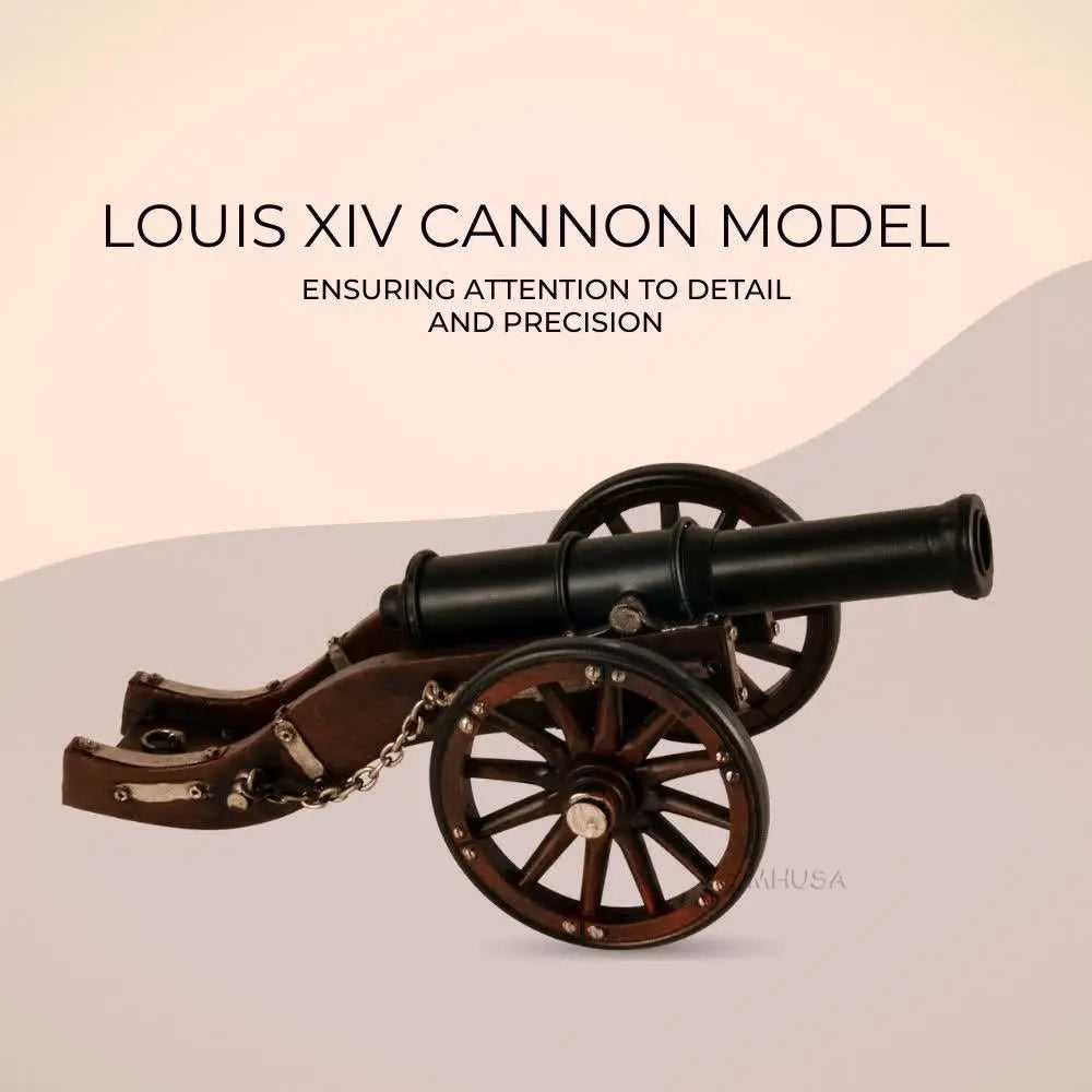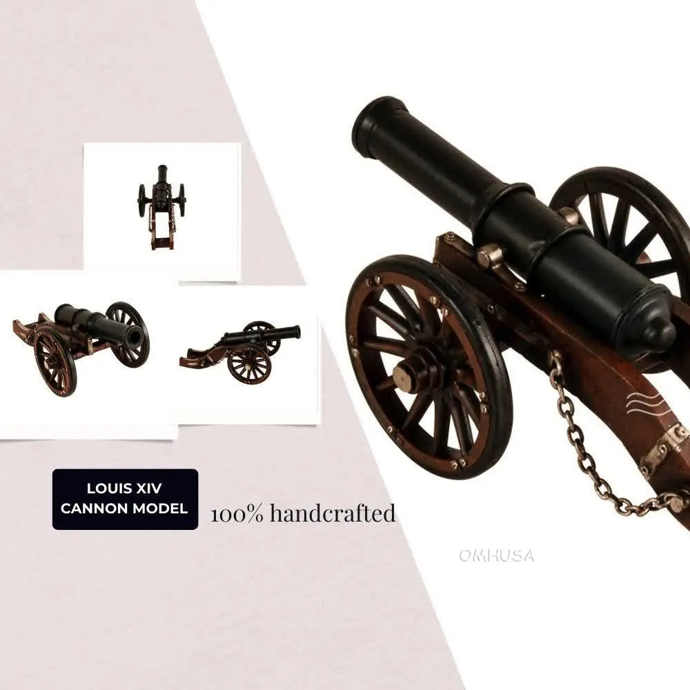 SKU - OMHAR023Louis XIV Cannon Model – Handmade Iron Miniature with Antique Finish, 11” Display Decor