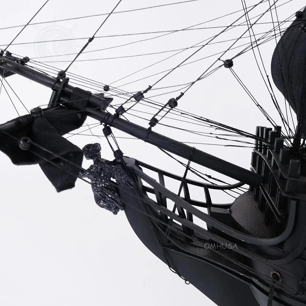 - Hand-stitched linen sails with detailed rigging and metal cannons