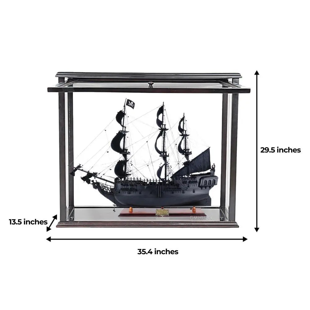 Pirate Ship Black Pearl Midsize – 29.5" Wood Model – Front Open Display Case Included By Old Modern Handicrafts