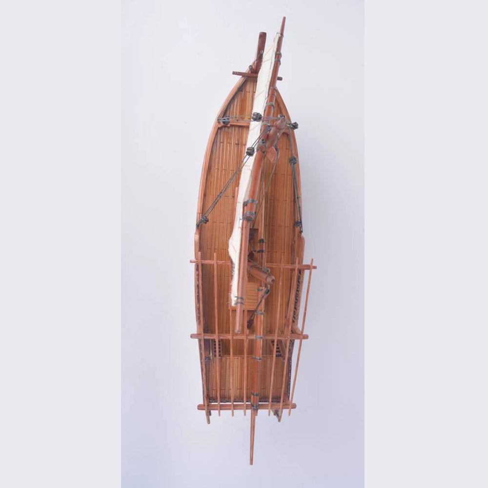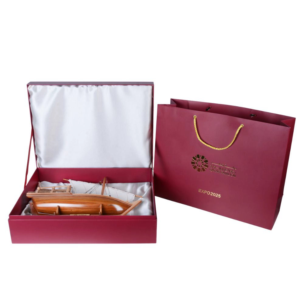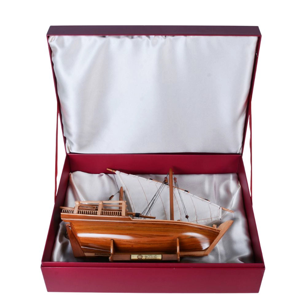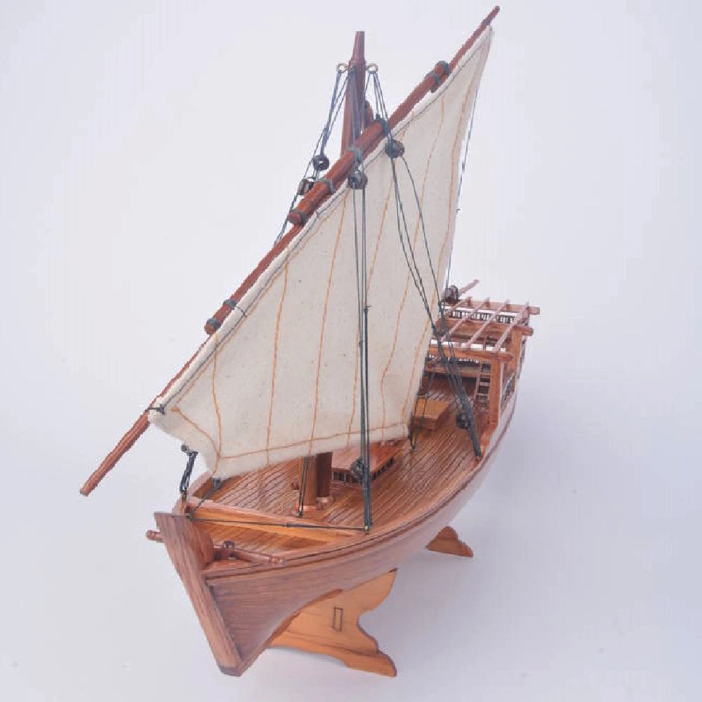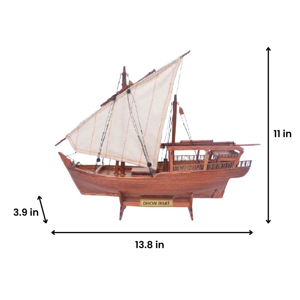 Dhow Ship Model 12 Inch Red Cedar Handcrafted with Linen Sails and Wood Base