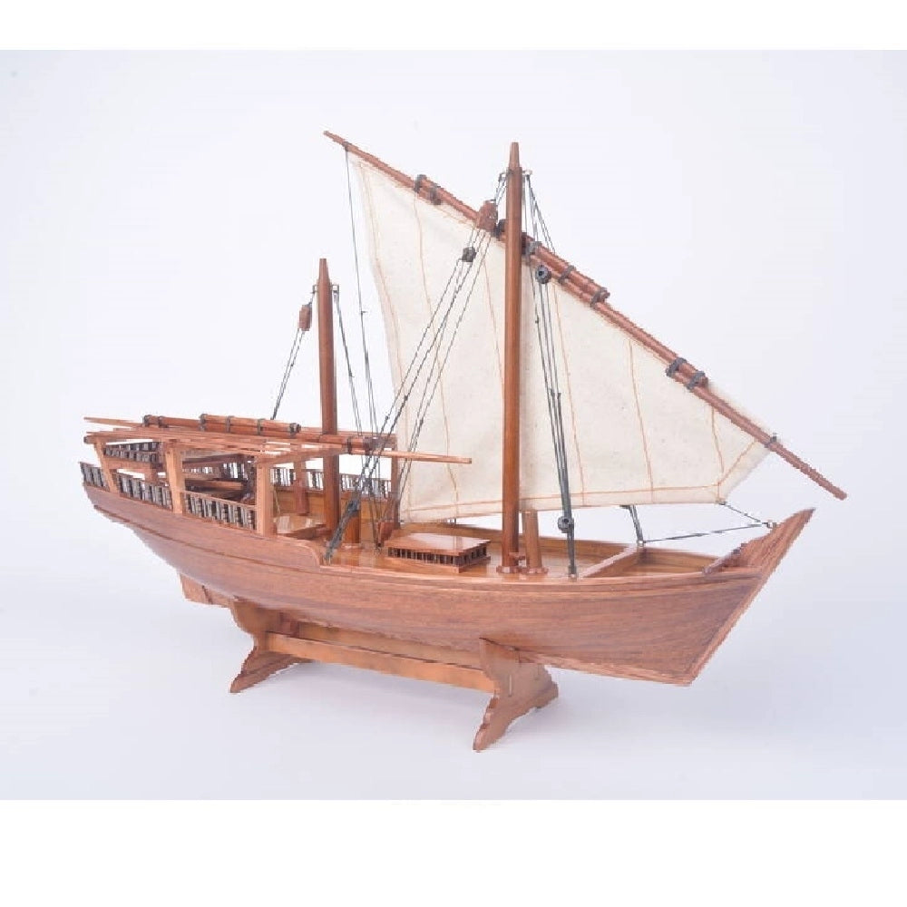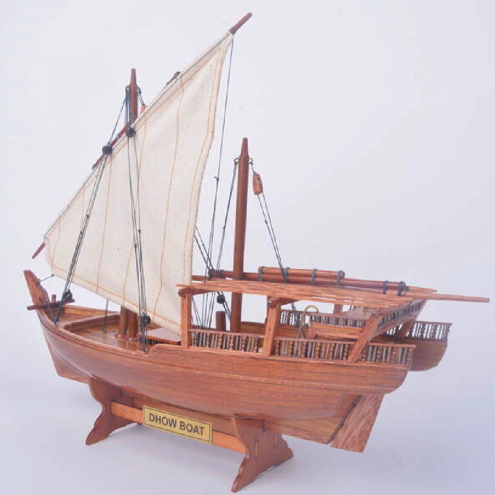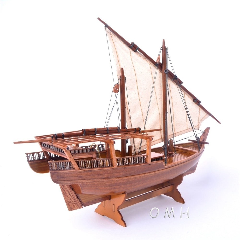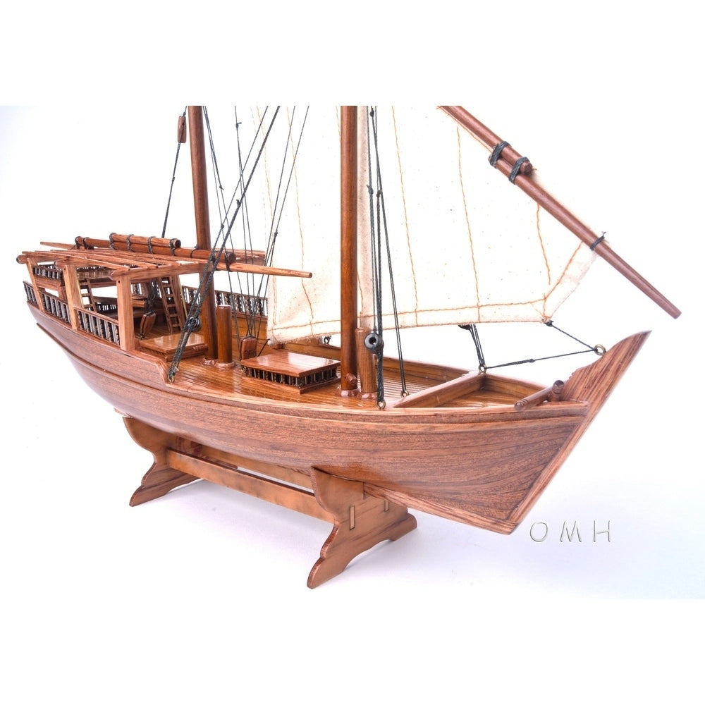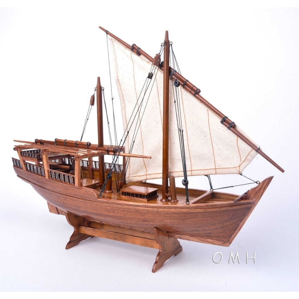 Old Modern Handicrafts Dhow Ship Model 12 Inch Red Cedar Handcrafted with Linen Sails and Wood Base