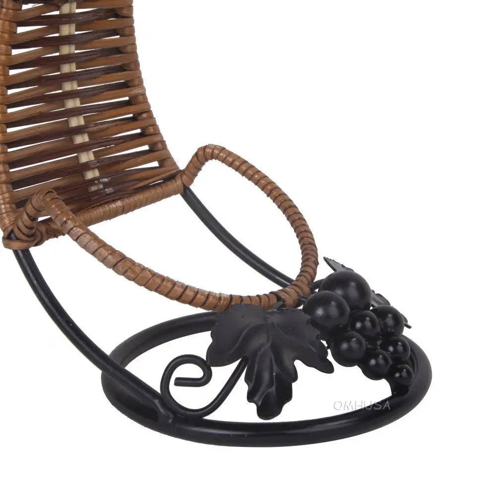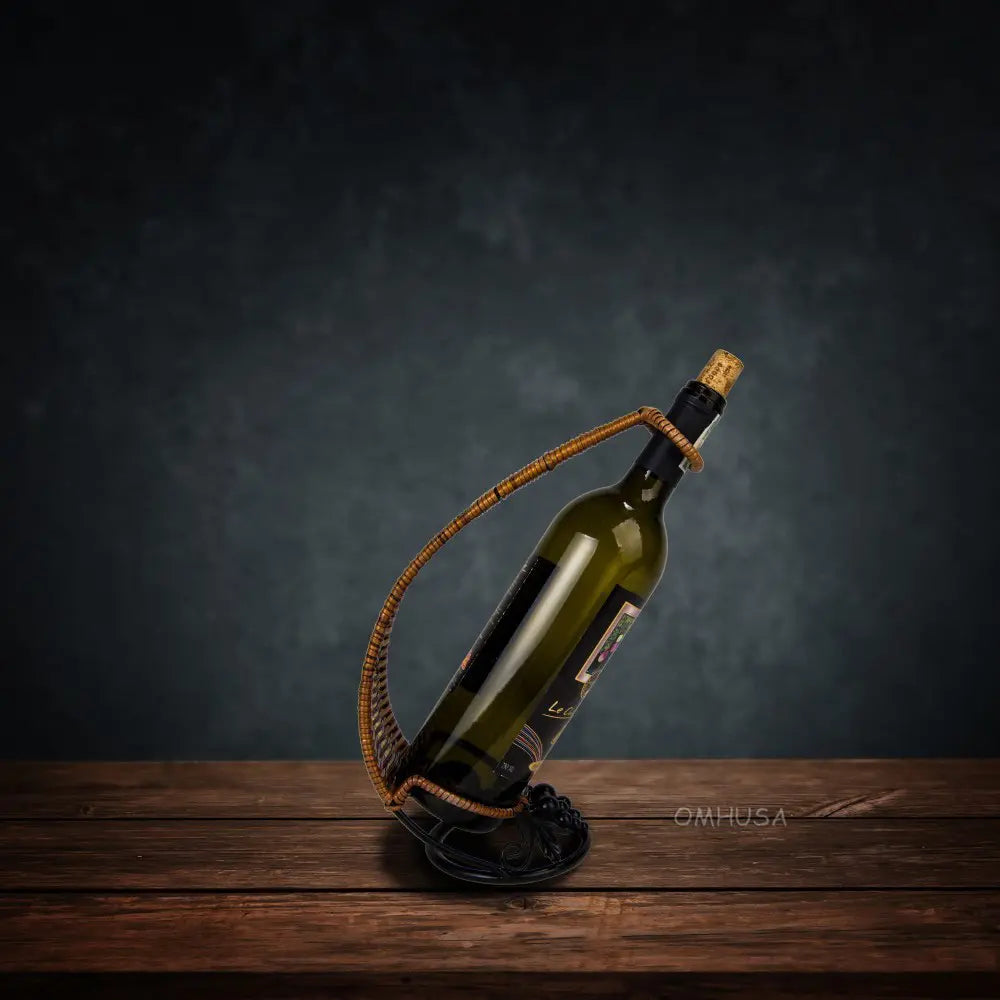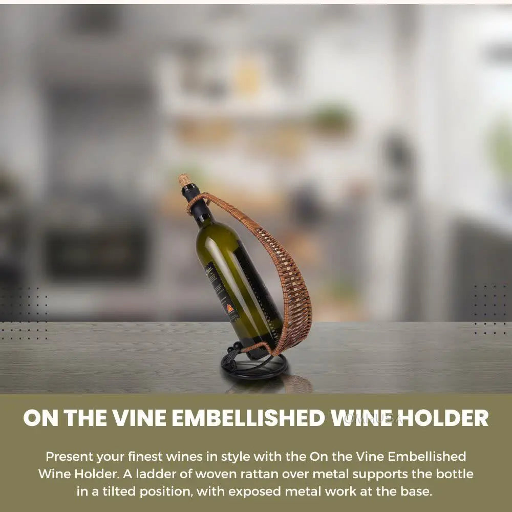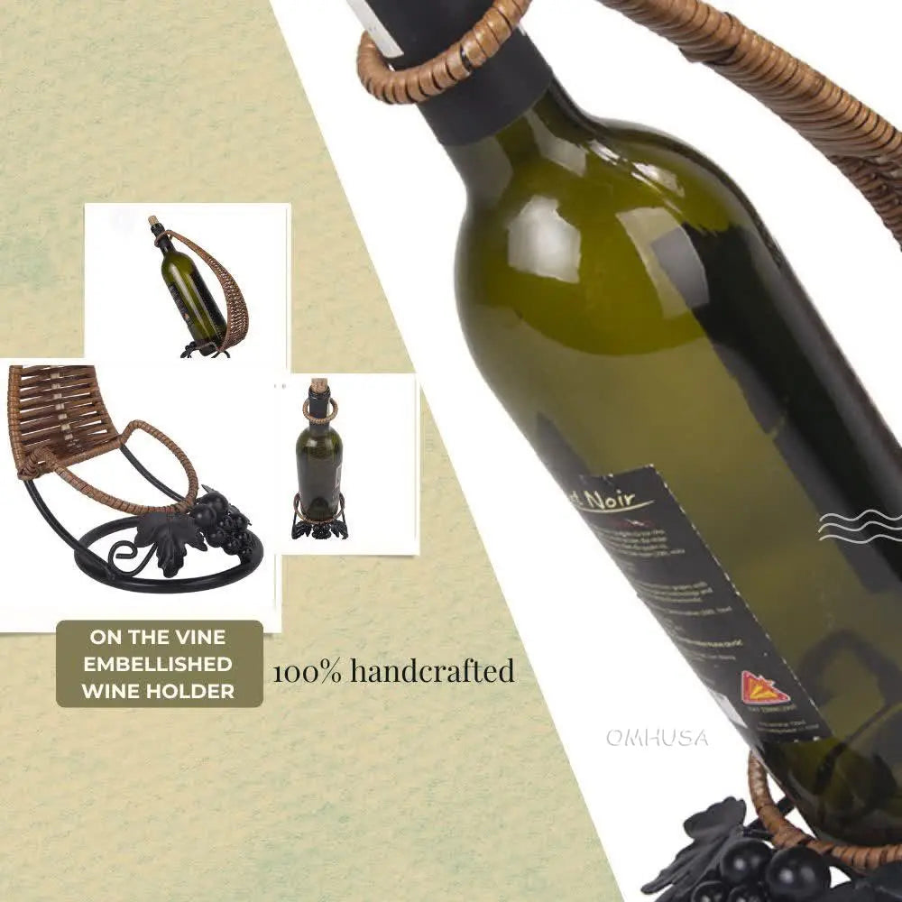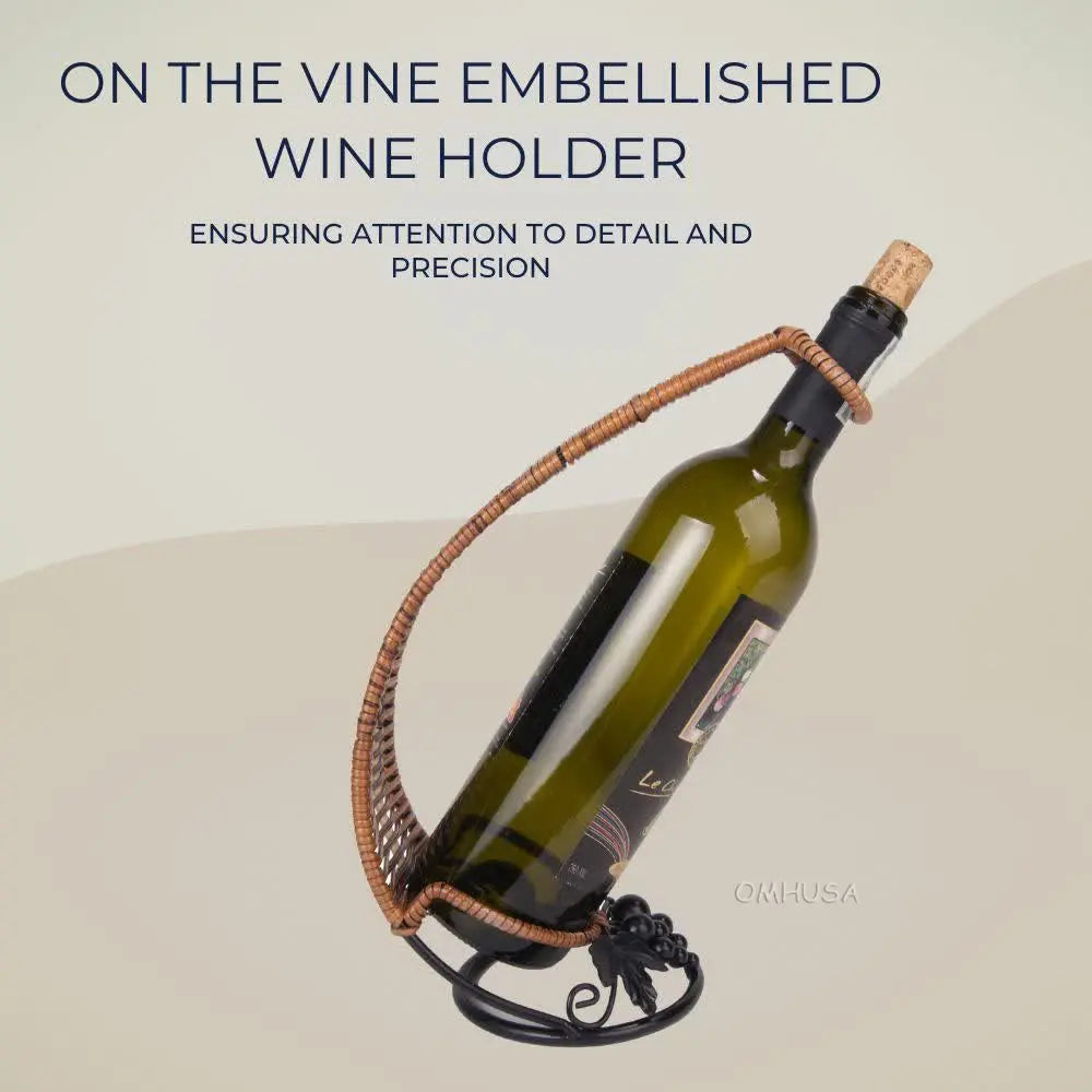 SKU - OMHMS008Embellished Wine Holder – Grapevine Design – 11.02 in Rattan Metal Stand