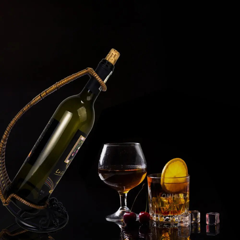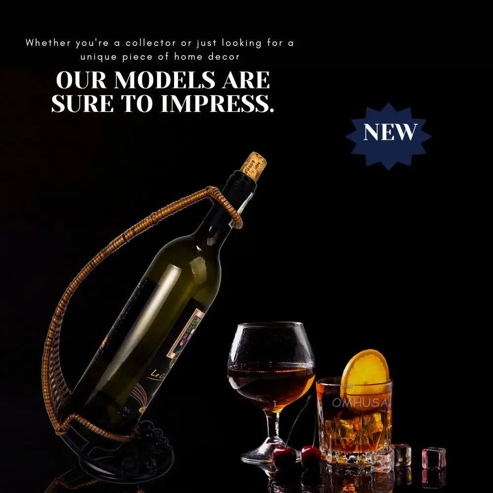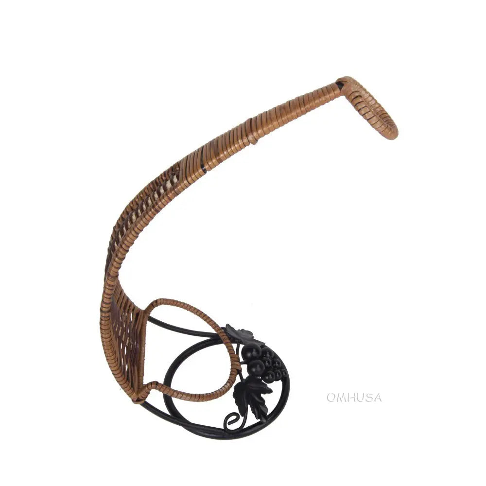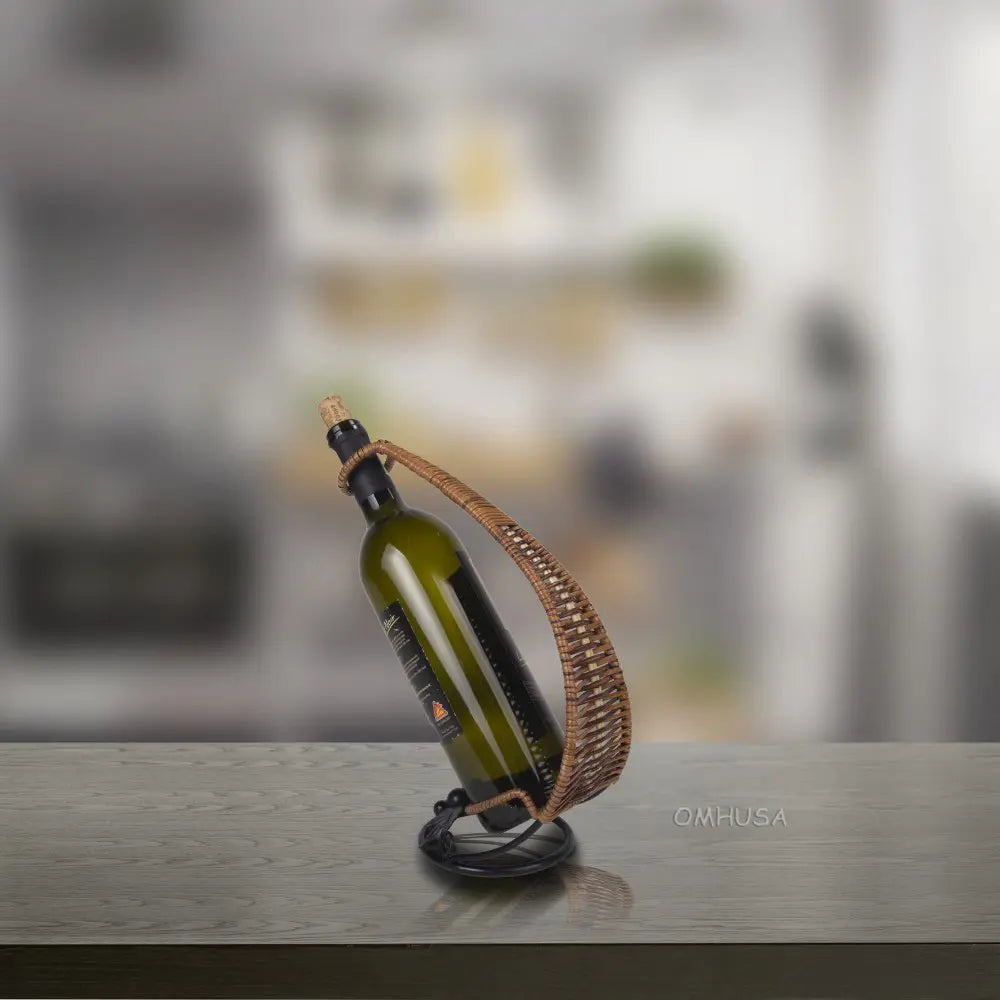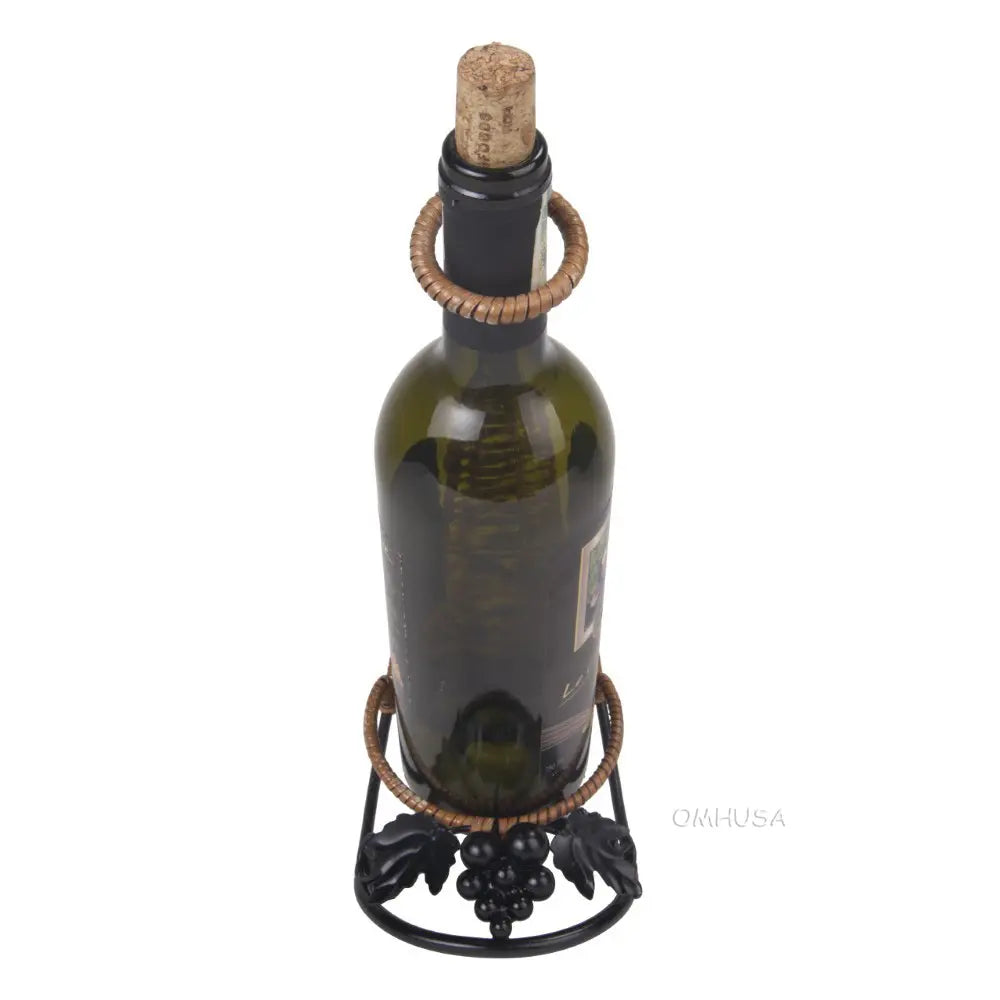 SKU - OMHMS008Embellished Wine Holder – Grapevine Design – 11.02 in Rattan Metal Stand