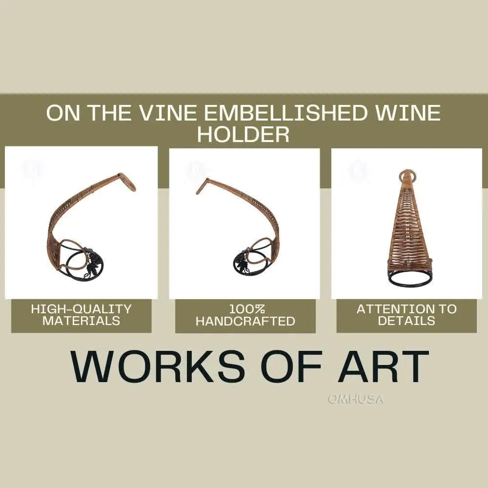 Embellished Wine Holder – Grapevine Design – 11.02 in Rattan Metal Stand By Old Modern Handicrafts