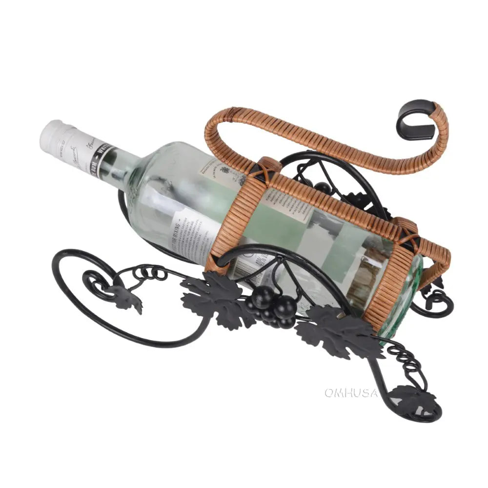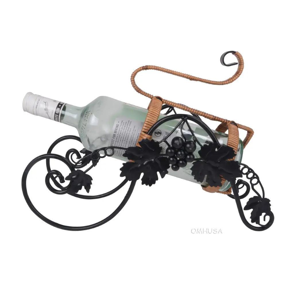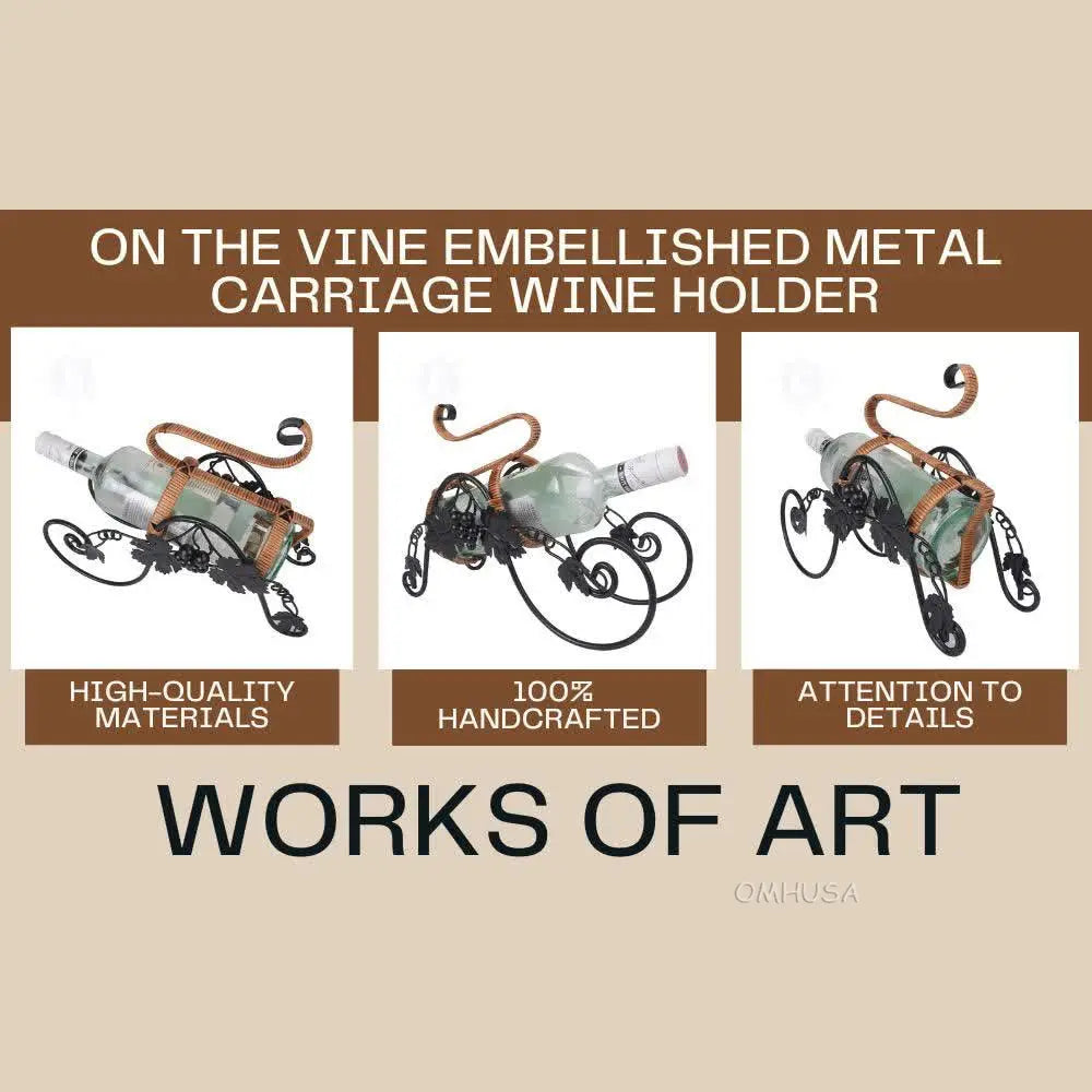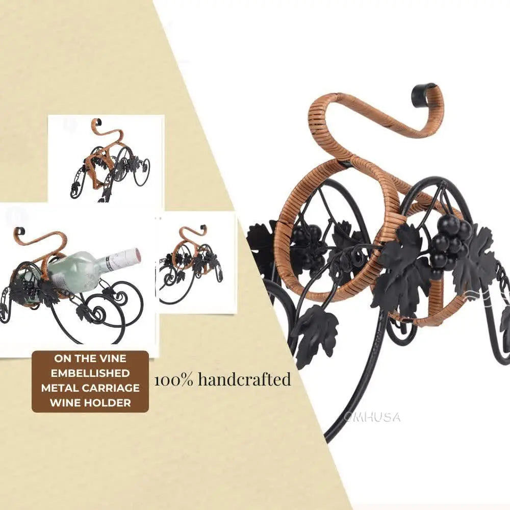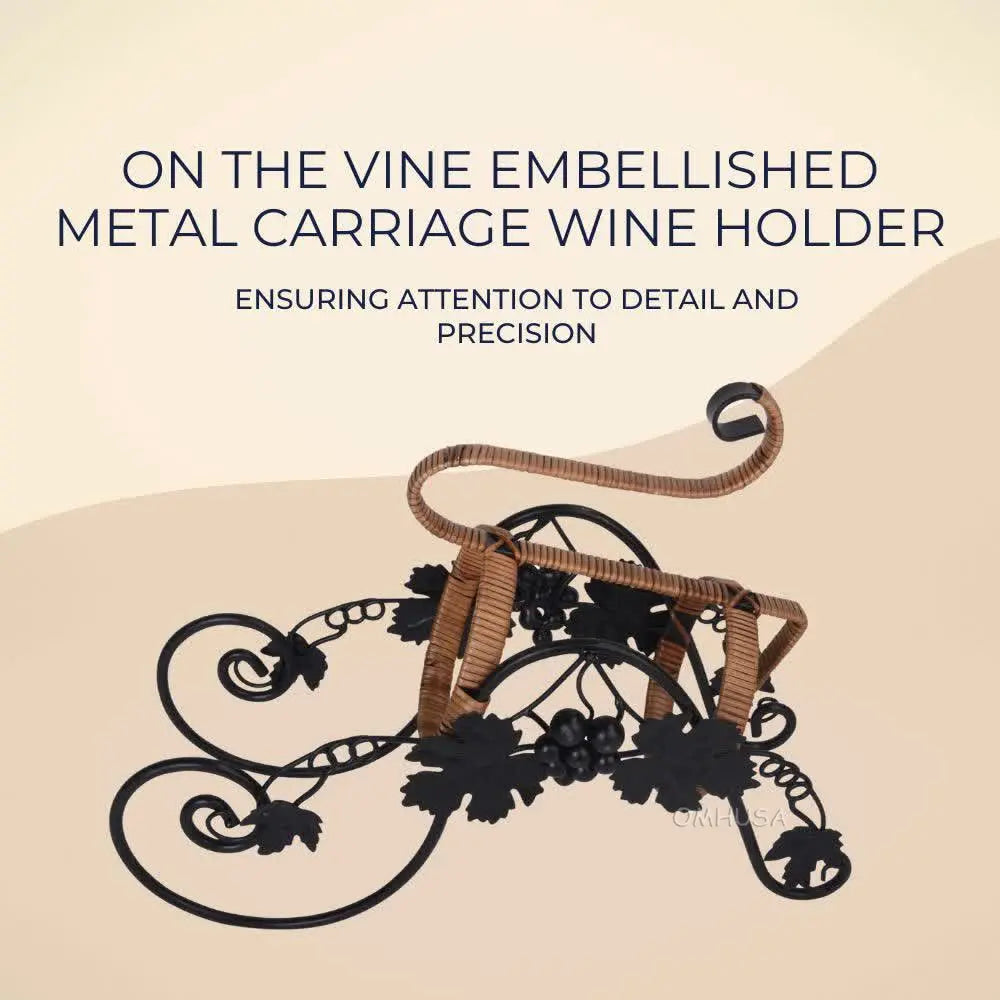 Metal Carriage Wine Holder – Grapevine Design – 9.84 Inch Table Display